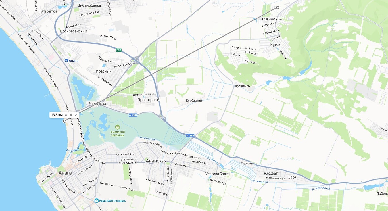 15 километров до моря и Анапы.