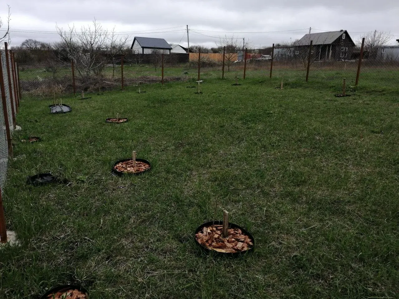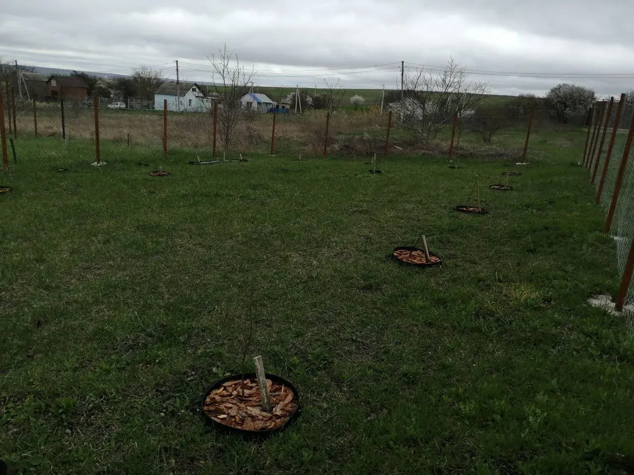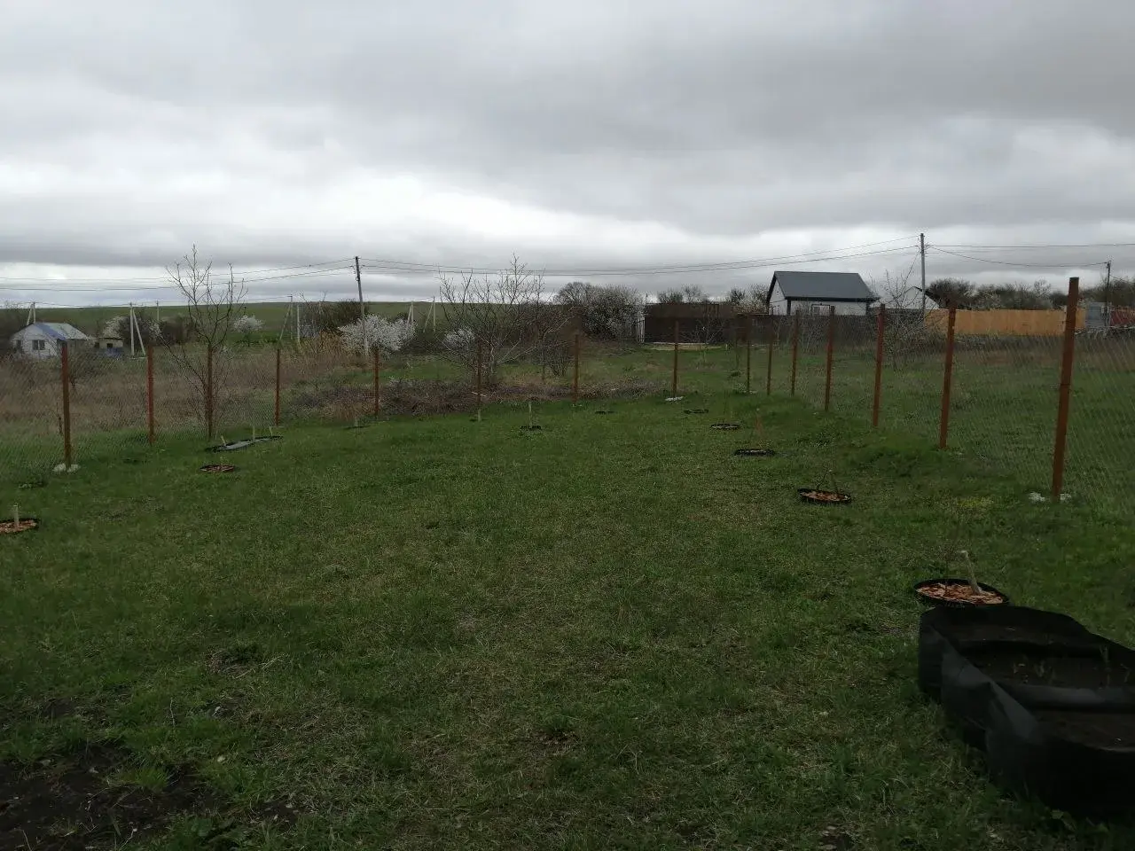 Высажены плодовые деревья,кустарники,ягоды,цветы.сад молодой,но перспективный.