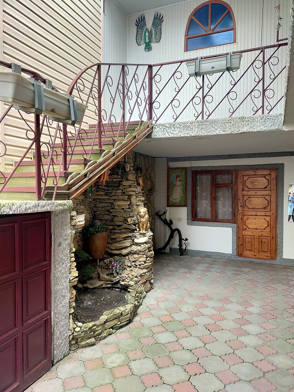 Часть пристройки укреплена колоннами, хороший фундамент, планировалось увеличение жилой площади еще на 8 номеров.
