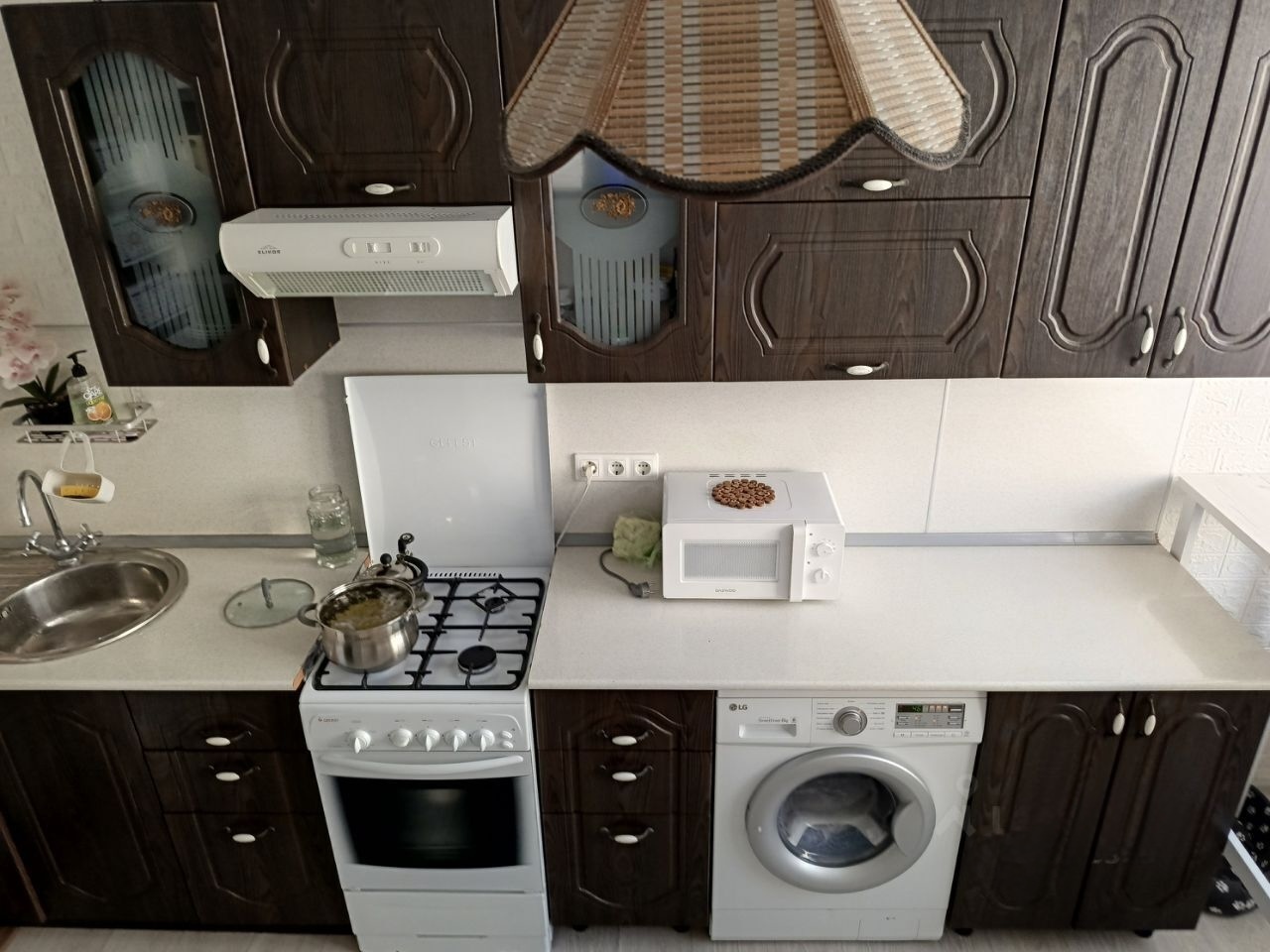 кухонный гарнитур, стиральная машинка, микроволновка, ТВ, холодильник, вся мебель. Всё как на фото. Всё, что вы видите на фото останется вам.