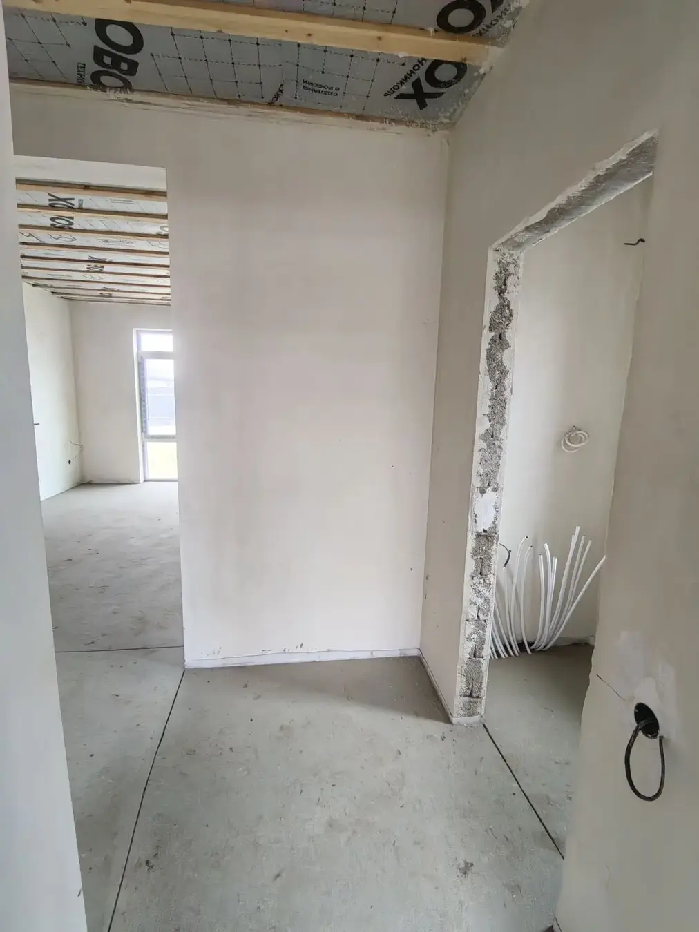 По всему периметру дома теплый пол.
