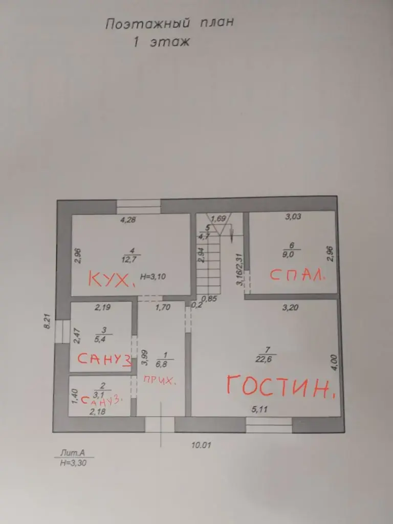 Кухня на первом этаже, и большой просторный зал, спальня на первом этаже и сан узел с постирочной. На втором этаже три раздельные спальни.