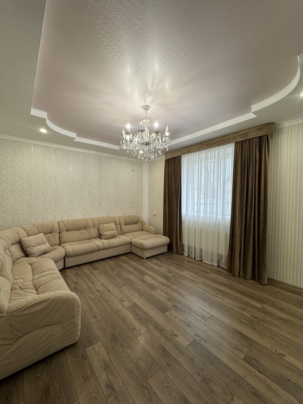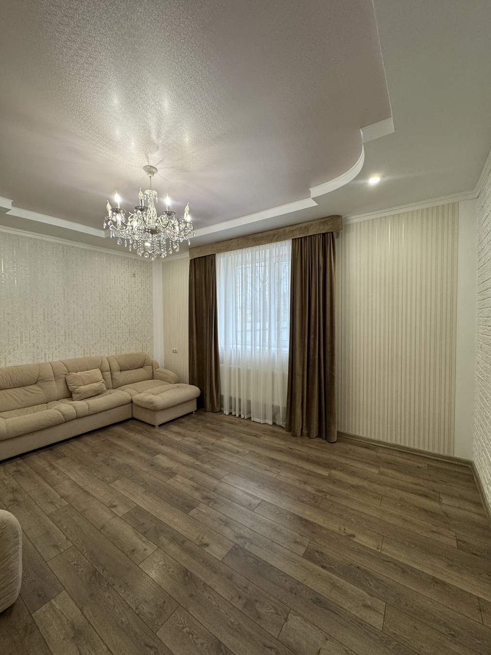 В доме выполнен хороший качественный ремонт, частично есть мебель все остается новому собственнику, Спальные гарнитуры, люстры, шторы, диван и встроенная кухня.