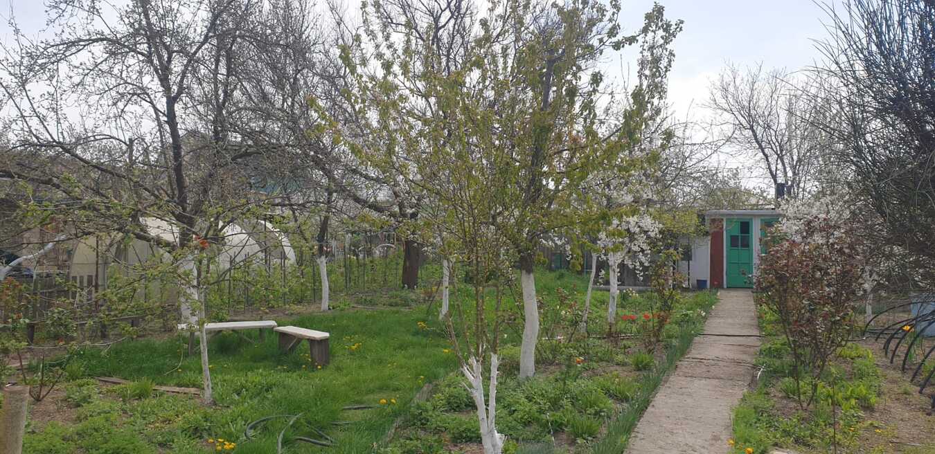 На участке плодовые деревья ,прекрасное место для зоны отдыха.