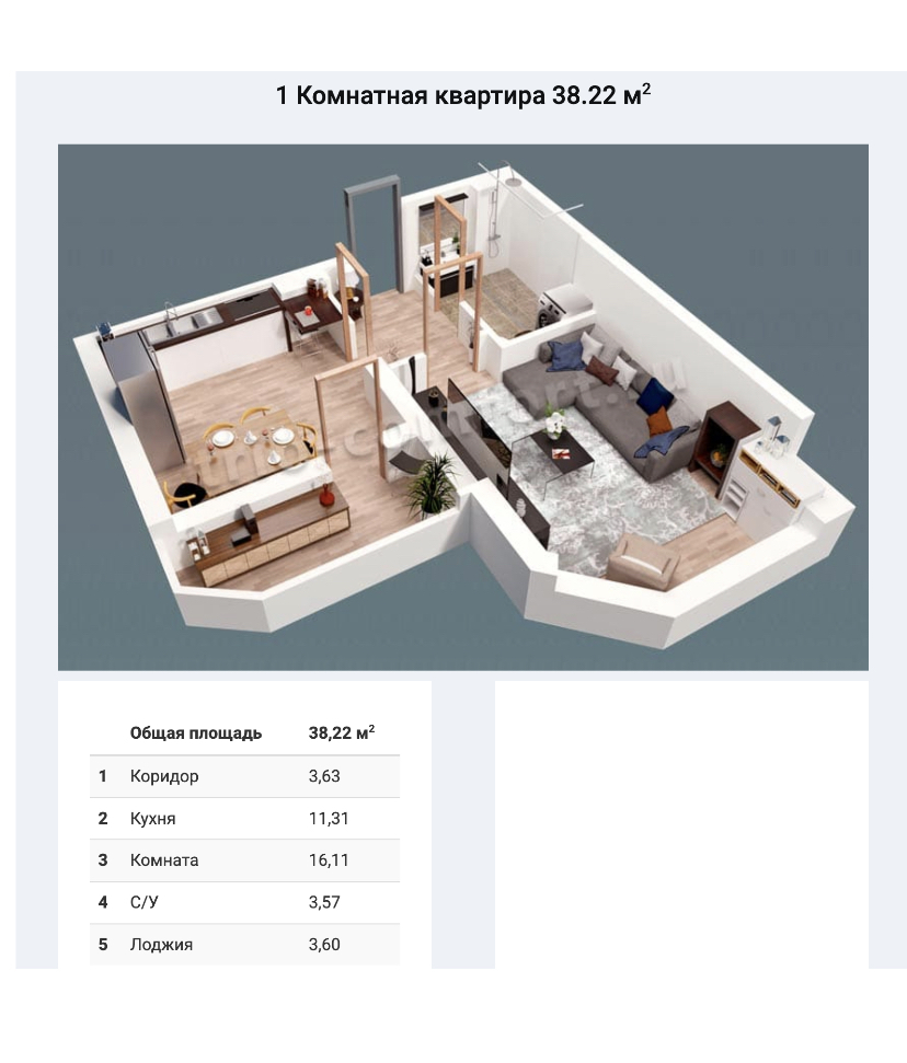 ✅Общая площадь 34.1 м2 + балкон