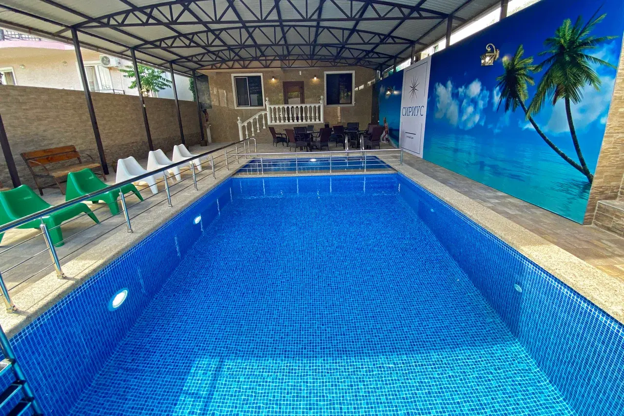 На территории имеется открытый бассейн (взрослый 9м х 6м и детский 5м х 2м), зона отдыха, шезлонги, зона барбекю.