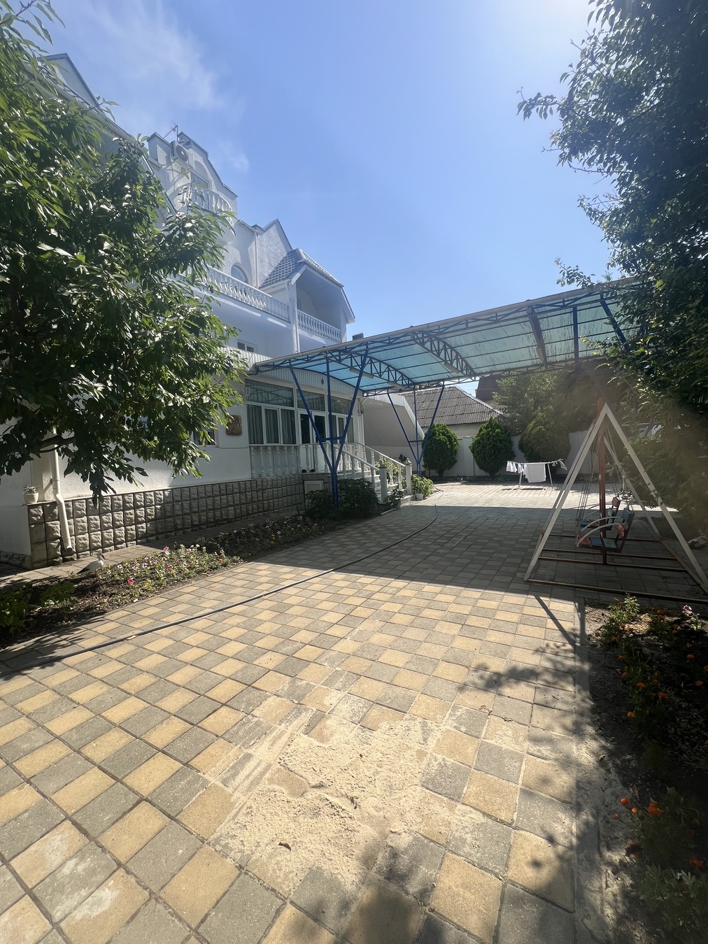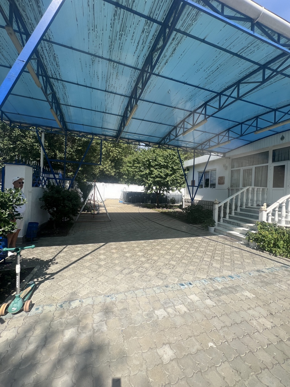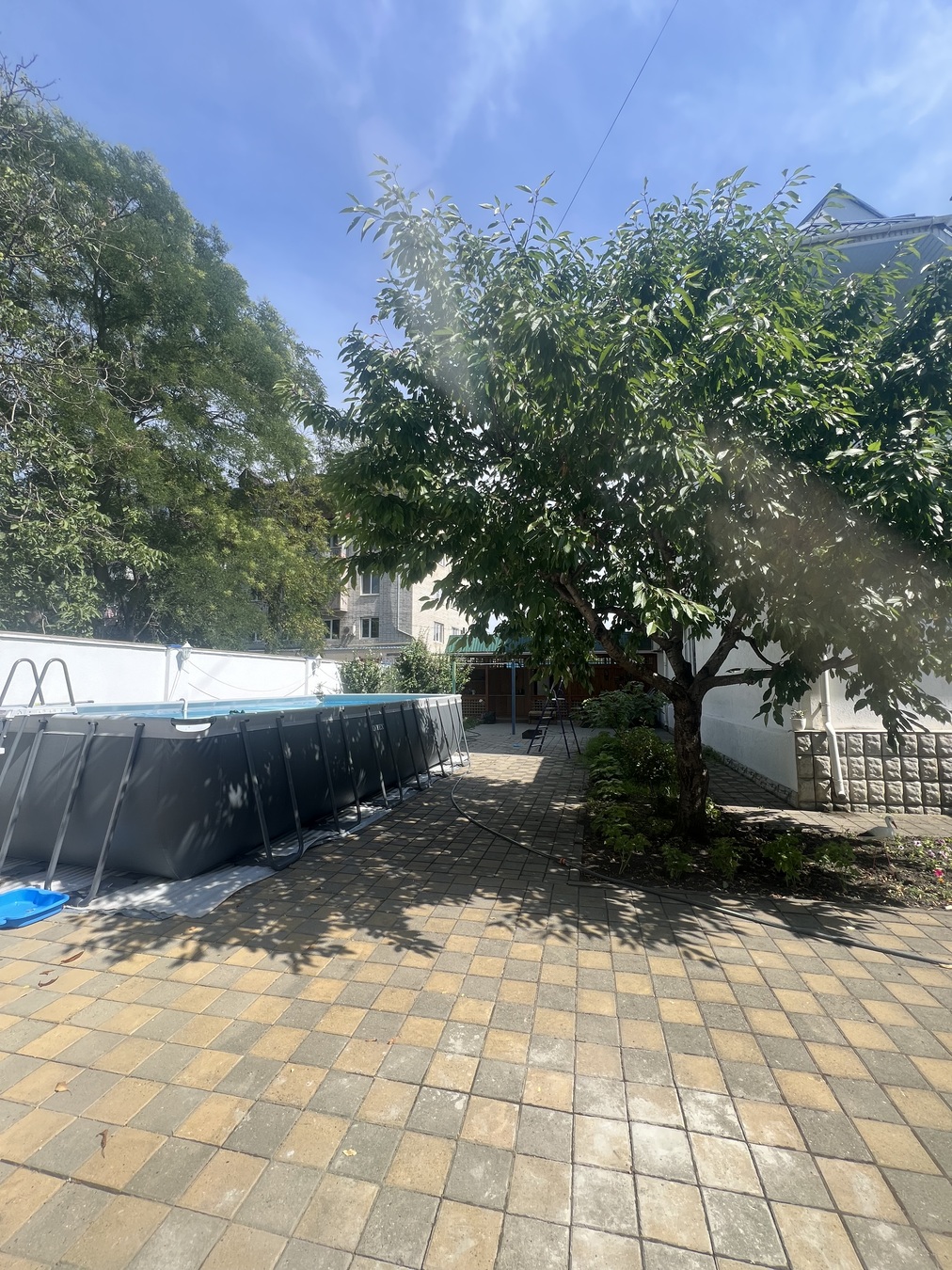 На территории имеется бассеин, беседка