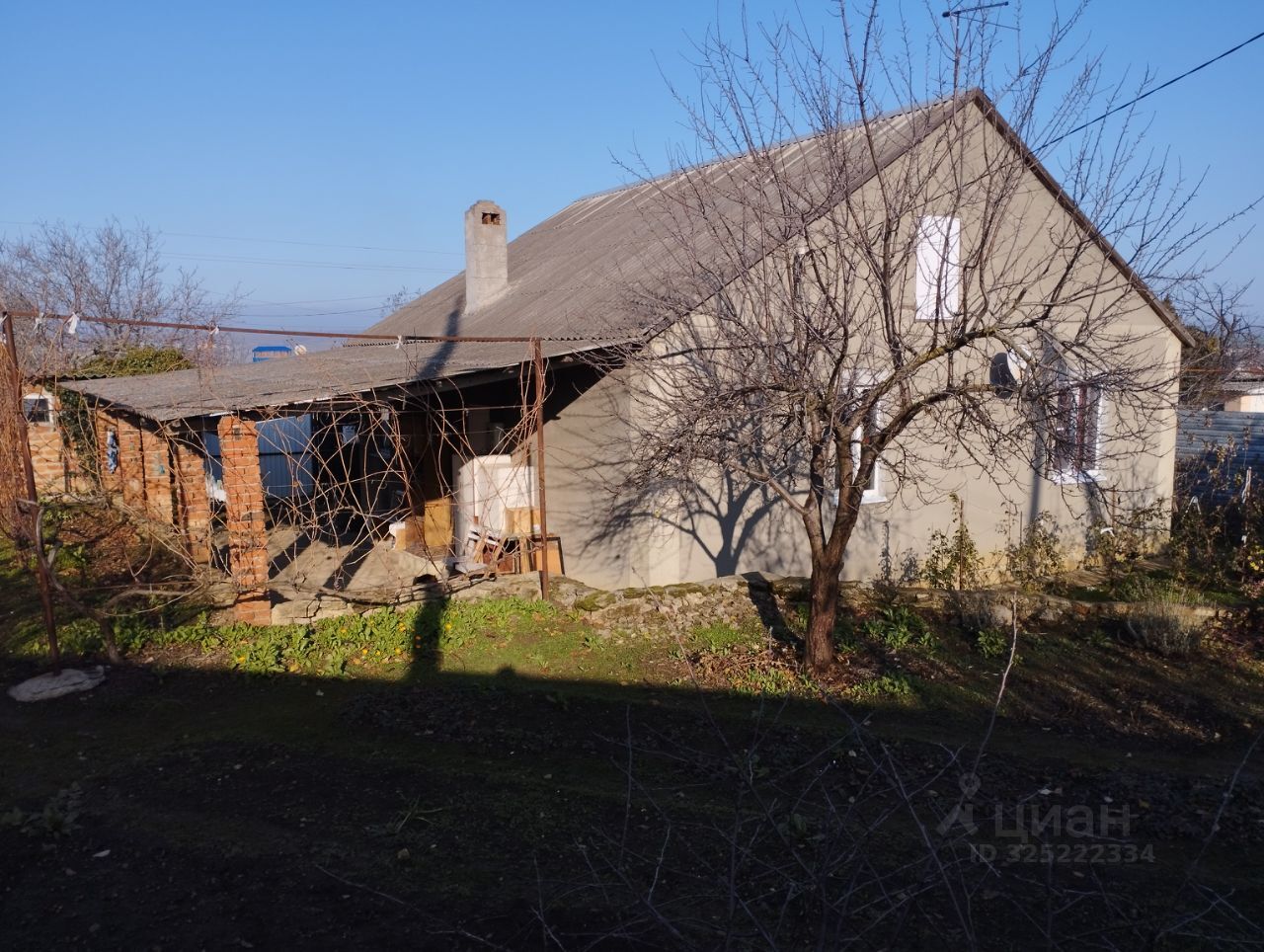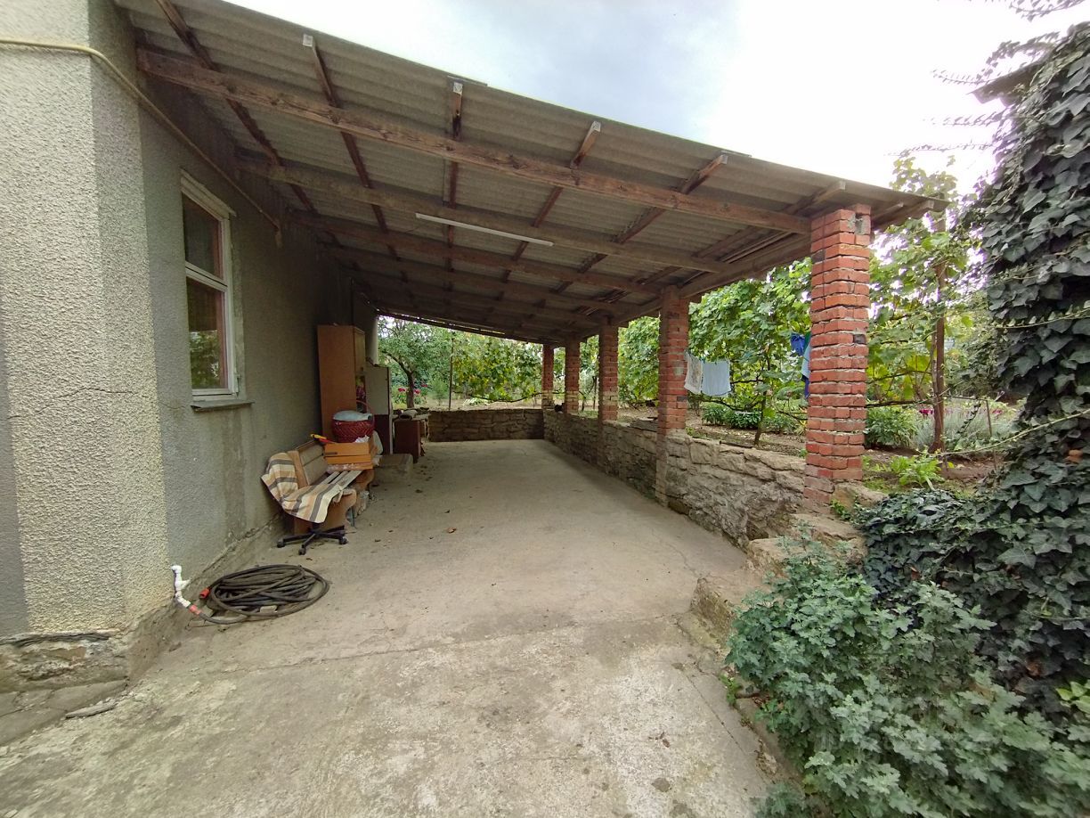 1-этажный жилой дом в хорошем состоянии: стены - блок+кирпич (снаружи - "шуба"), крыша - двухскатная (шифер), большой чердак (не утеплен), к дому примыкает большой навес над площадкой на 2 машины.