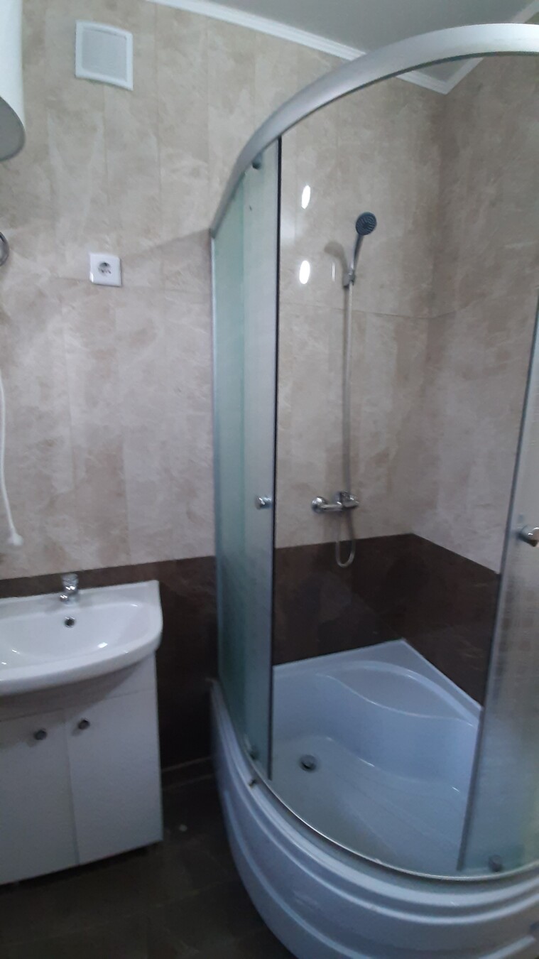 Имеется кухонный гарнитур, установлена сантехника, душевая кабинка.
