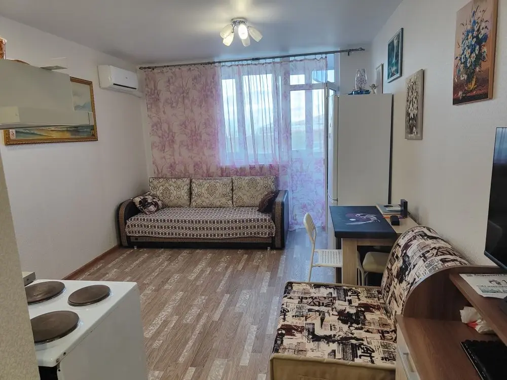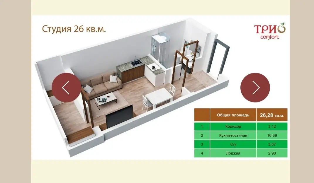 Продается студия на 7 этаже в ЖК "ТРИО". Свежий ремонт, кондиционер, водонагревательный бак. Охраняемый двор, заезд по пропускам, внутри двора детская площадка, облагороженная "зеленая" территория, детский сад, фитнес-центр, магазины. В непосредственной близости строится Императорский парк. Набережная 40лет победы и Ореховая роща в 15 минутах прогулочным шагом. До остановки 3 мин.