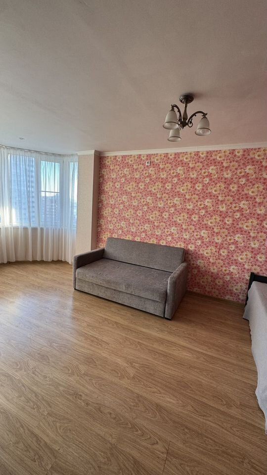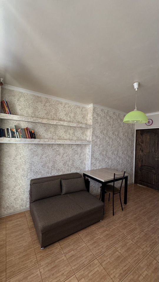 Кухня гостиная с выходом на лоджию. Санузел в плитке. Ремонт новый. Мебель остаётся.