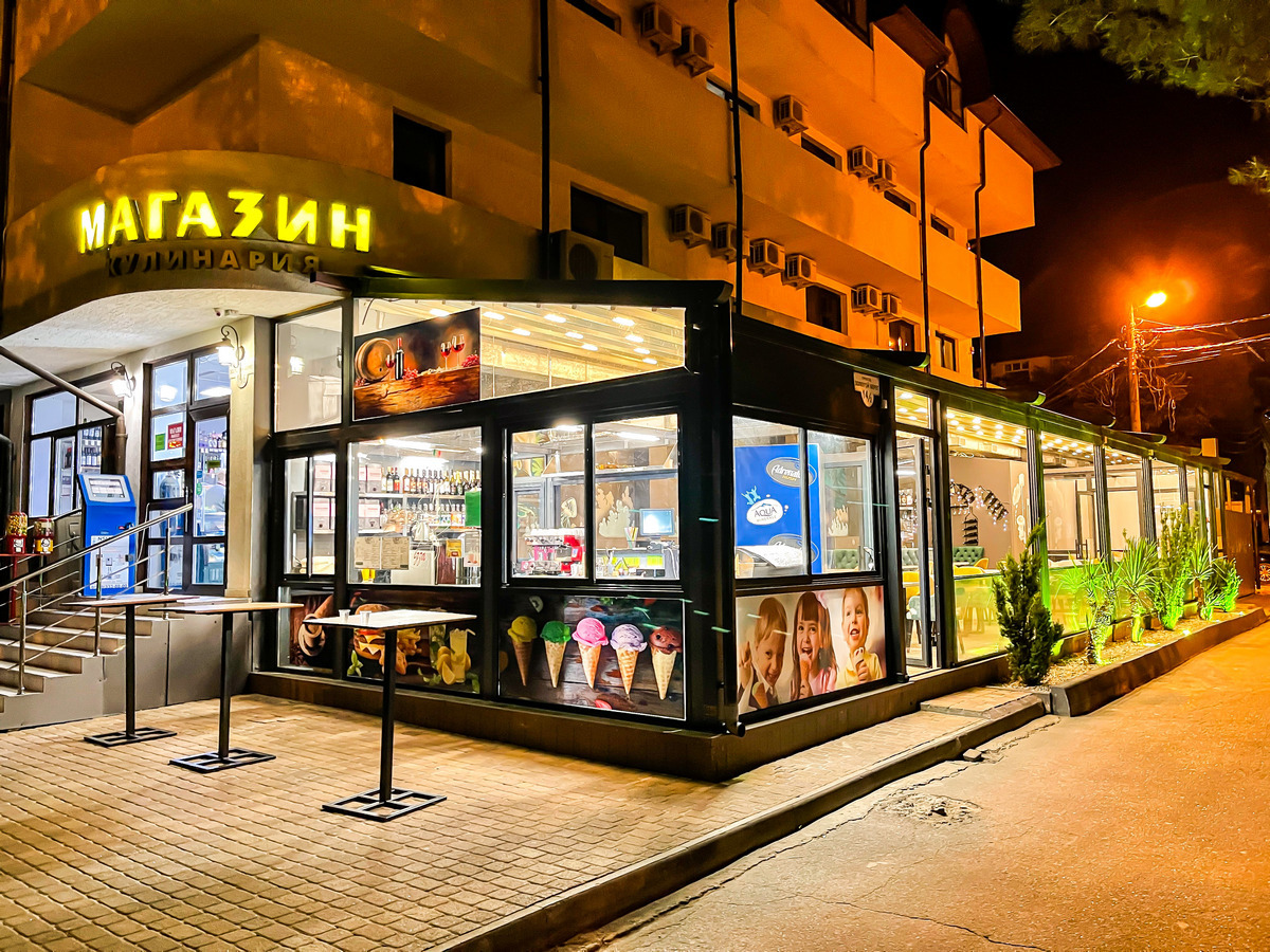 На первом этаже Отеля расположен магазин и кафе с уютной летней террасой.