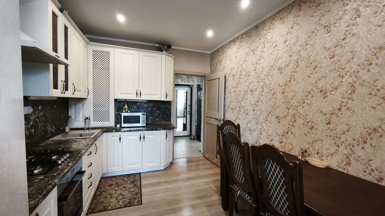 Квартира расположена 08 этаже 13 этажного дома. В квартире выполнен евроремонт, мебель и техника остаются, в кухне установлен теплый пол, на лоджию выведен радиатор отопления, выделена гардеробная, в которой установлены два вместительных шкафа. Коммуникации центральные, отопление индивидуальное газовое, что позволяет регулировать тепло и его подачу вне зависимости от отопительного сезона.