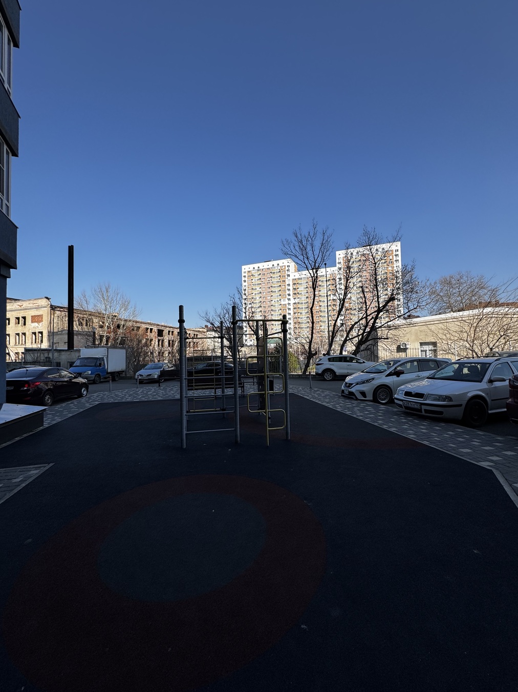 Напротив дома остановка общественного транспорта. Закрытая придомовая территория, две детских площадки, парковочные места.