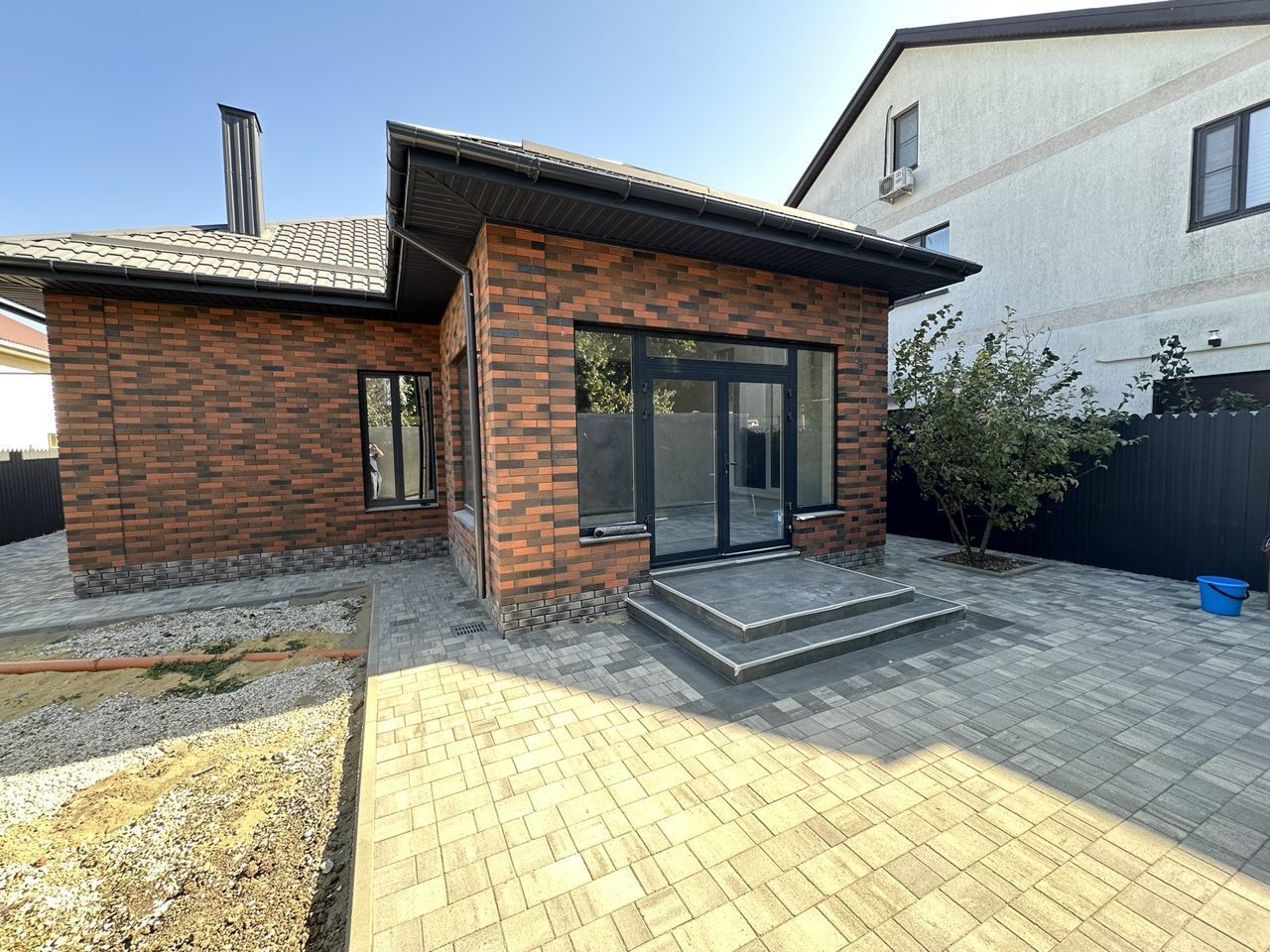Освещение дома, двор выложен плиткой