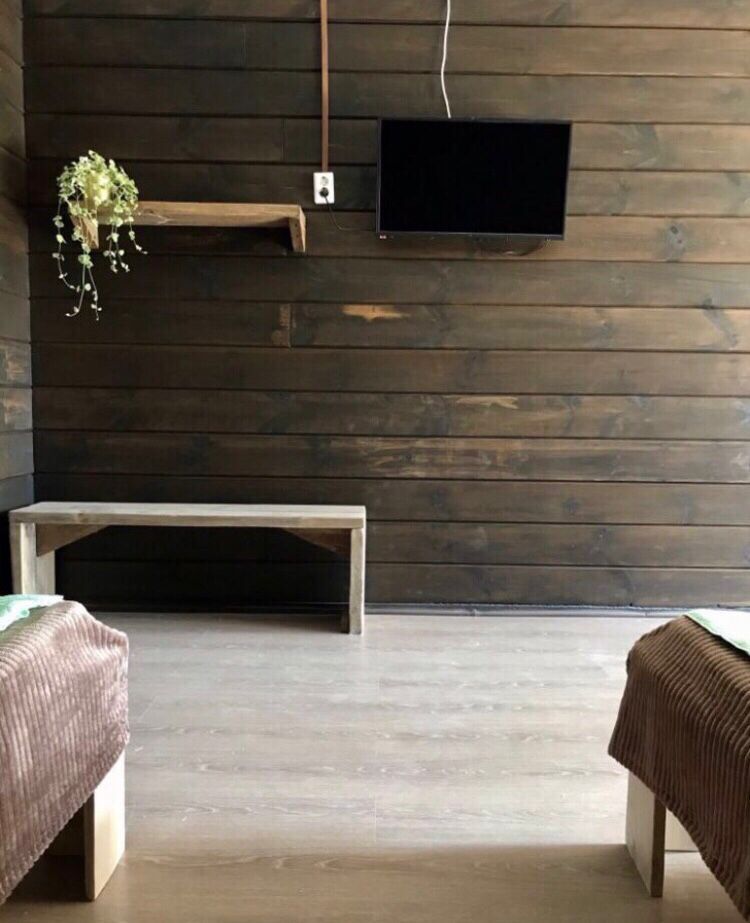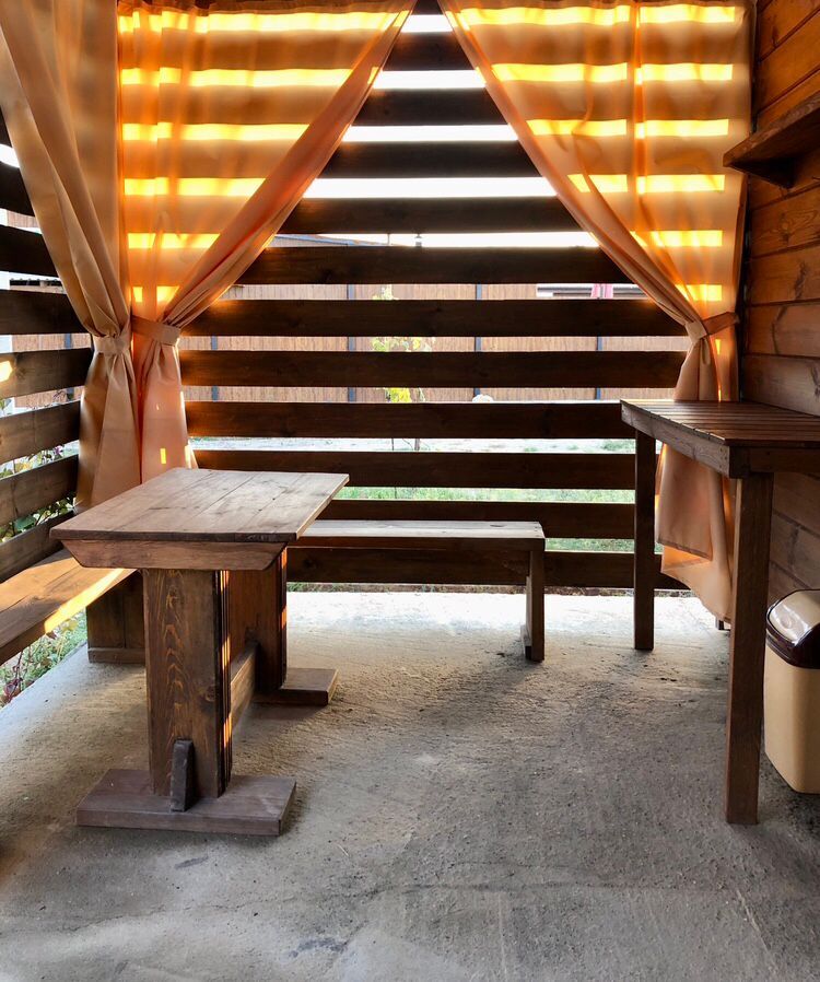 - Дом построен из клеенного бруса , обработанного масловоском - запах дерева способствует настроению отдыха и ощущению комфорта. Во дворе плодоносящий сад и много зелени.