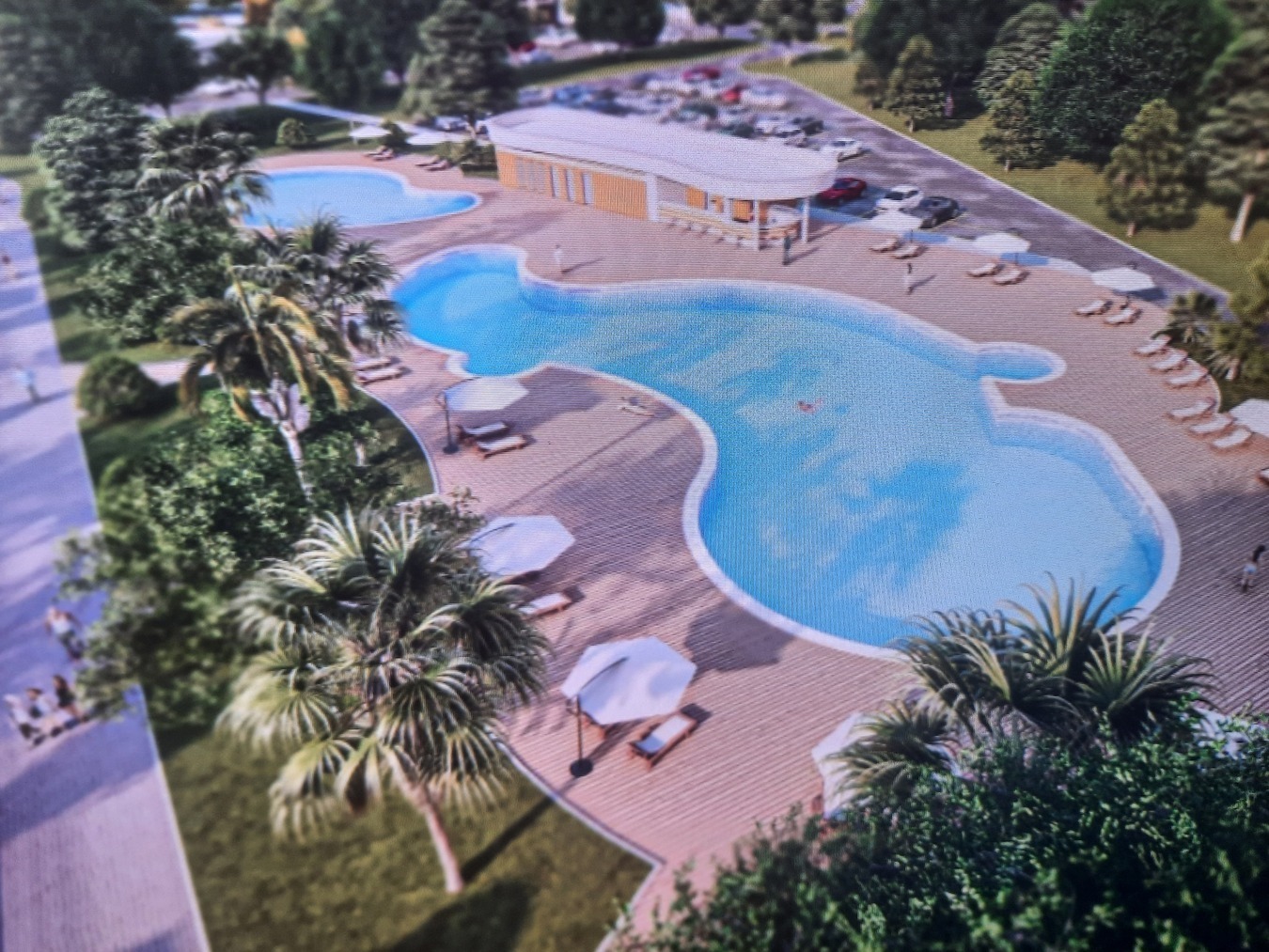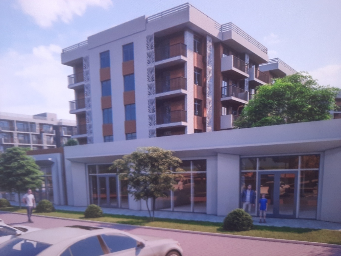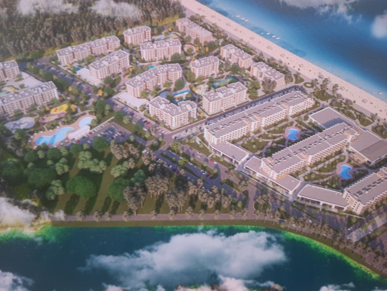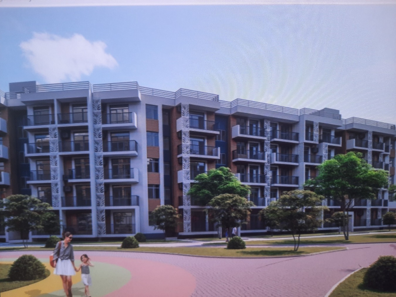 Закрытый двор с ландшафтным озеленением, детскими и спортивными площадками, зоны для отдыха и прогулок, подогреваемый бассейн и собственный благоустроенный пляж и набережная высотой 3 м над морем.