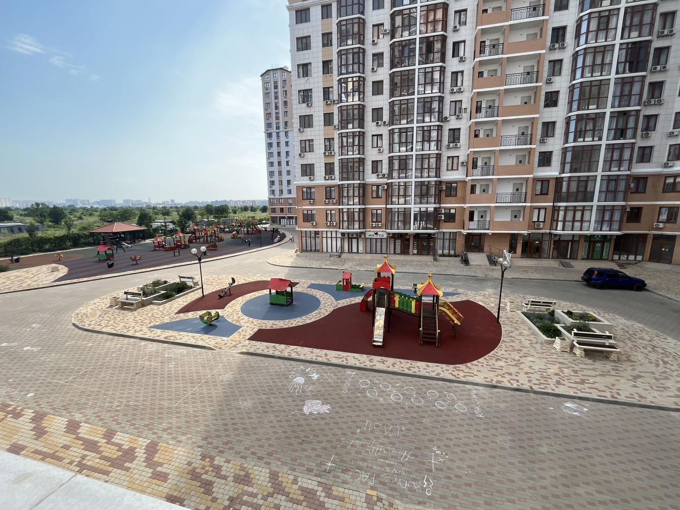 Развитая инфраструктура, школы, детские сады, гипермаркеты.