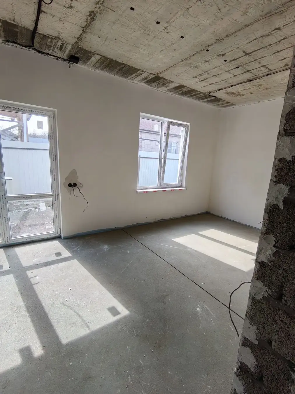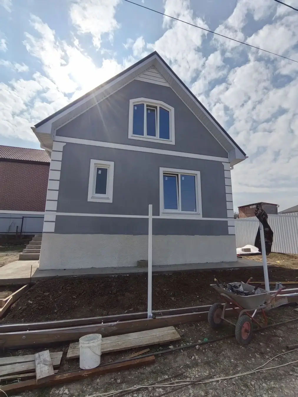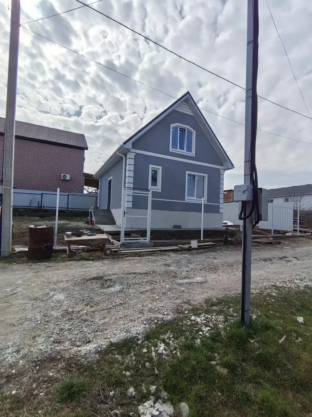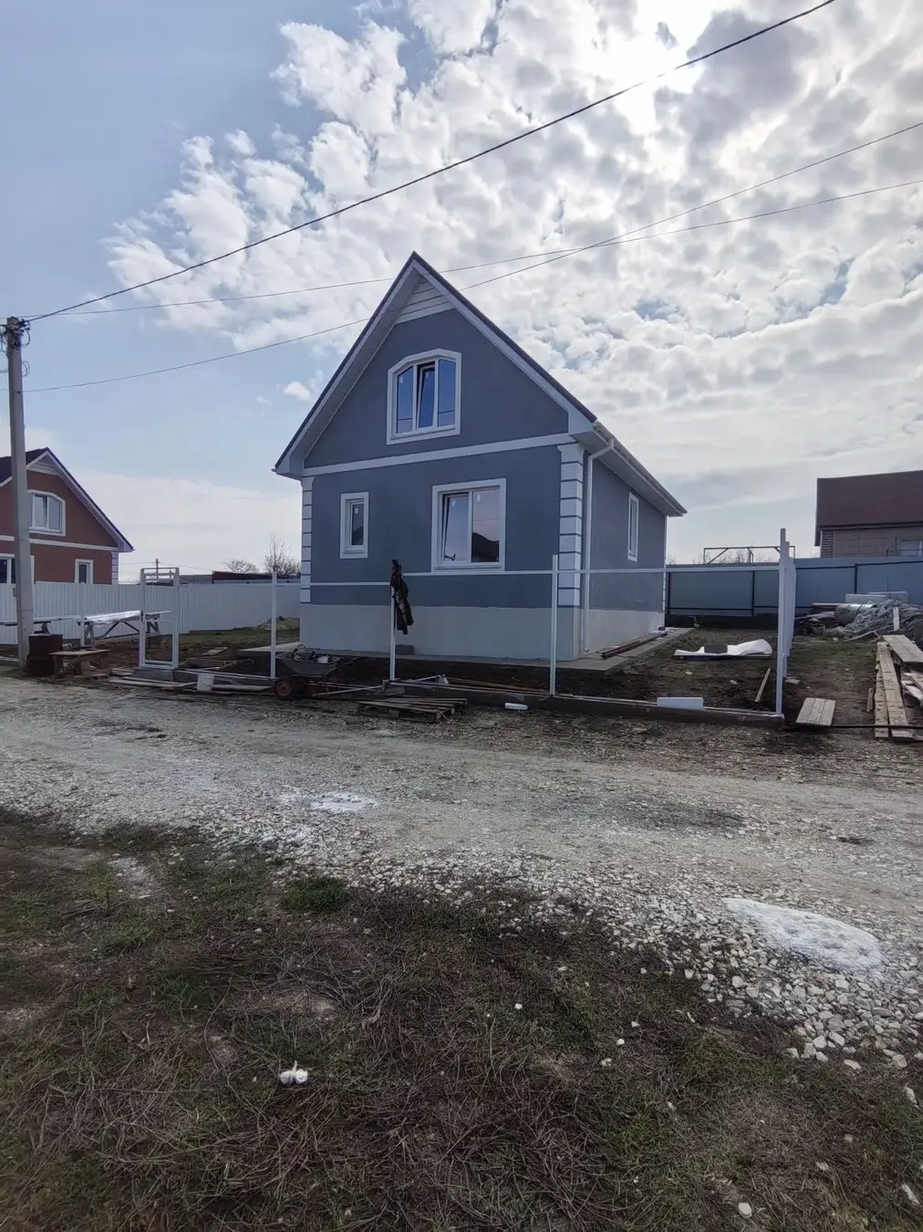 Дом из керамзитового блока, с двойными стеклопакетами, мягкой черепицей, три спальни и большой кухней-гостиной. Будет завершена полная пред чистовая отделка.