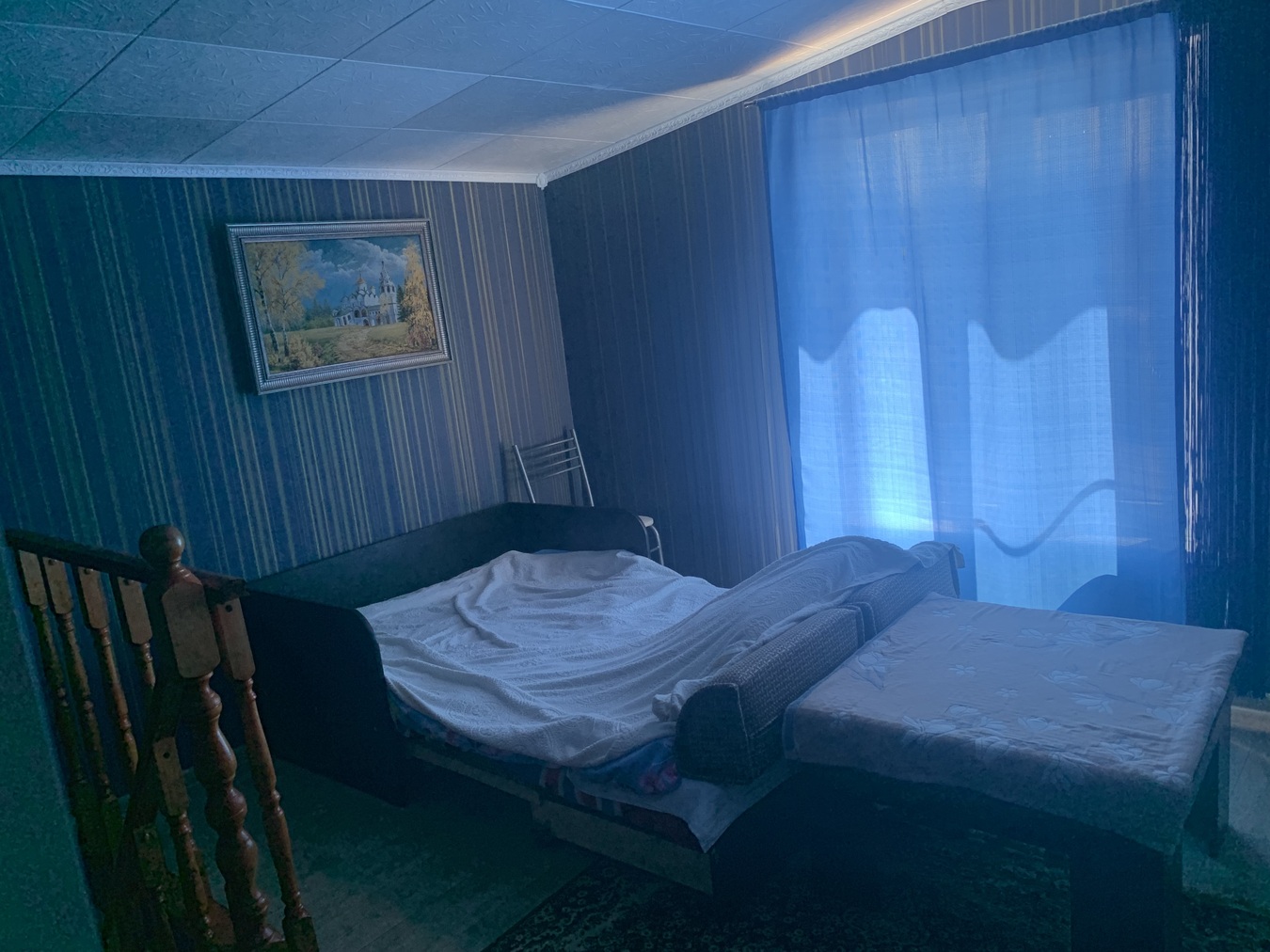 2-й этаж 2 жилые комнаты, холл, сплит система, удобная лестница деревянная.