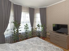 Первый этаж: 4 спальни, кухня, гостиная, санузел, кухня-столовая.