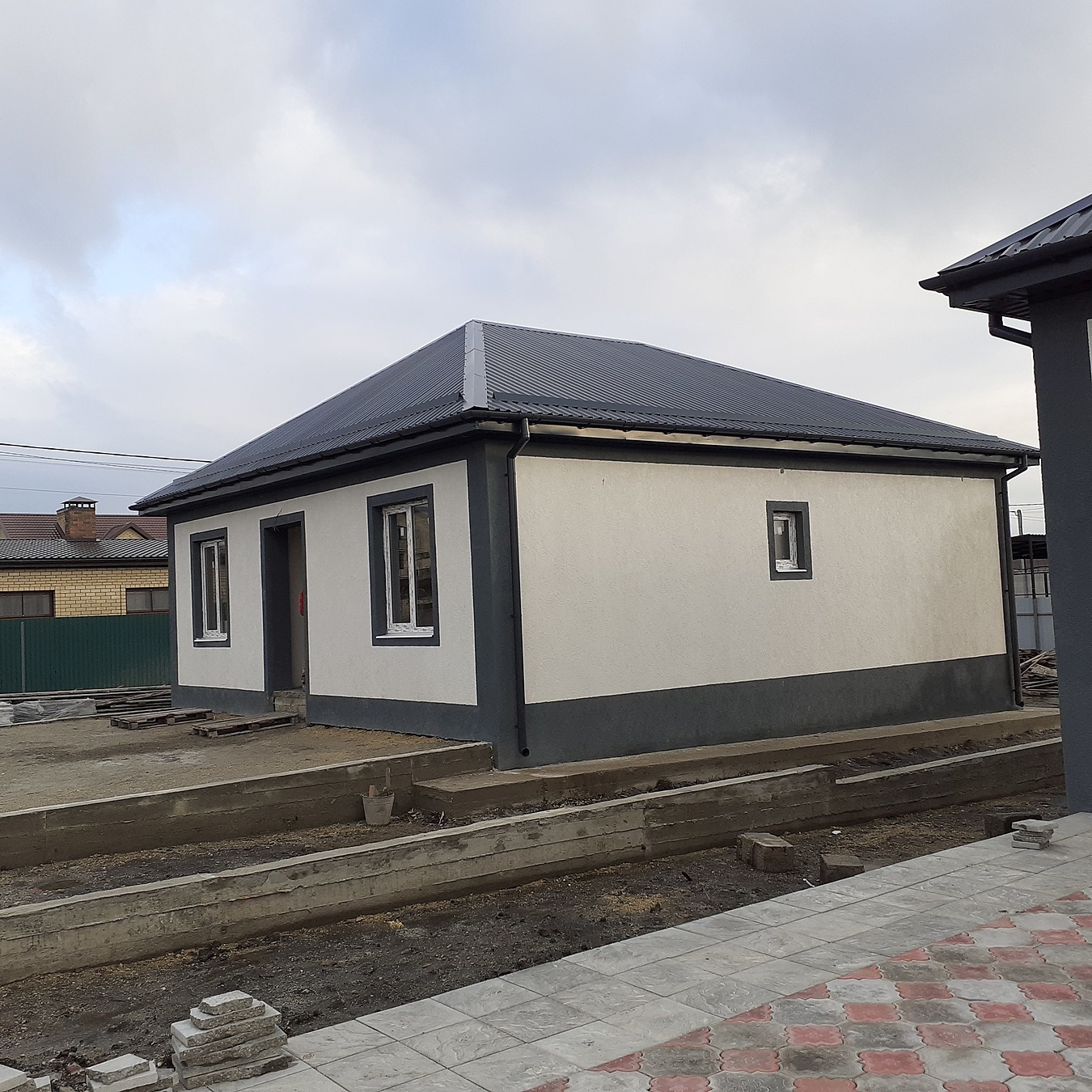Продам 1-этажный дом с хорошей предчистовой отделкой под обои.В доме 3 комнаты и кухня-гостиная,санузел,бойлерная,по всему дому теплый пол.Площадка перед домом выложена красивой плиткой.Вокруг дома поставлен забор.Получено электричество 15 квт.,скважина,септик.До города и пляжа на Пионерском проспекте 3 км,15 минут на машине.