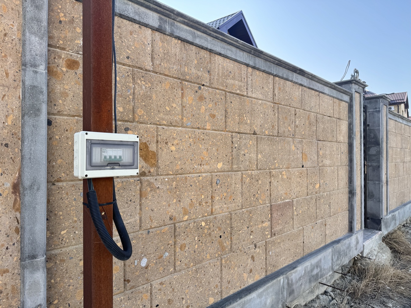 Толщина стен 55 см (блок + утепление техноплекс + облицовка природным камнем туфом).