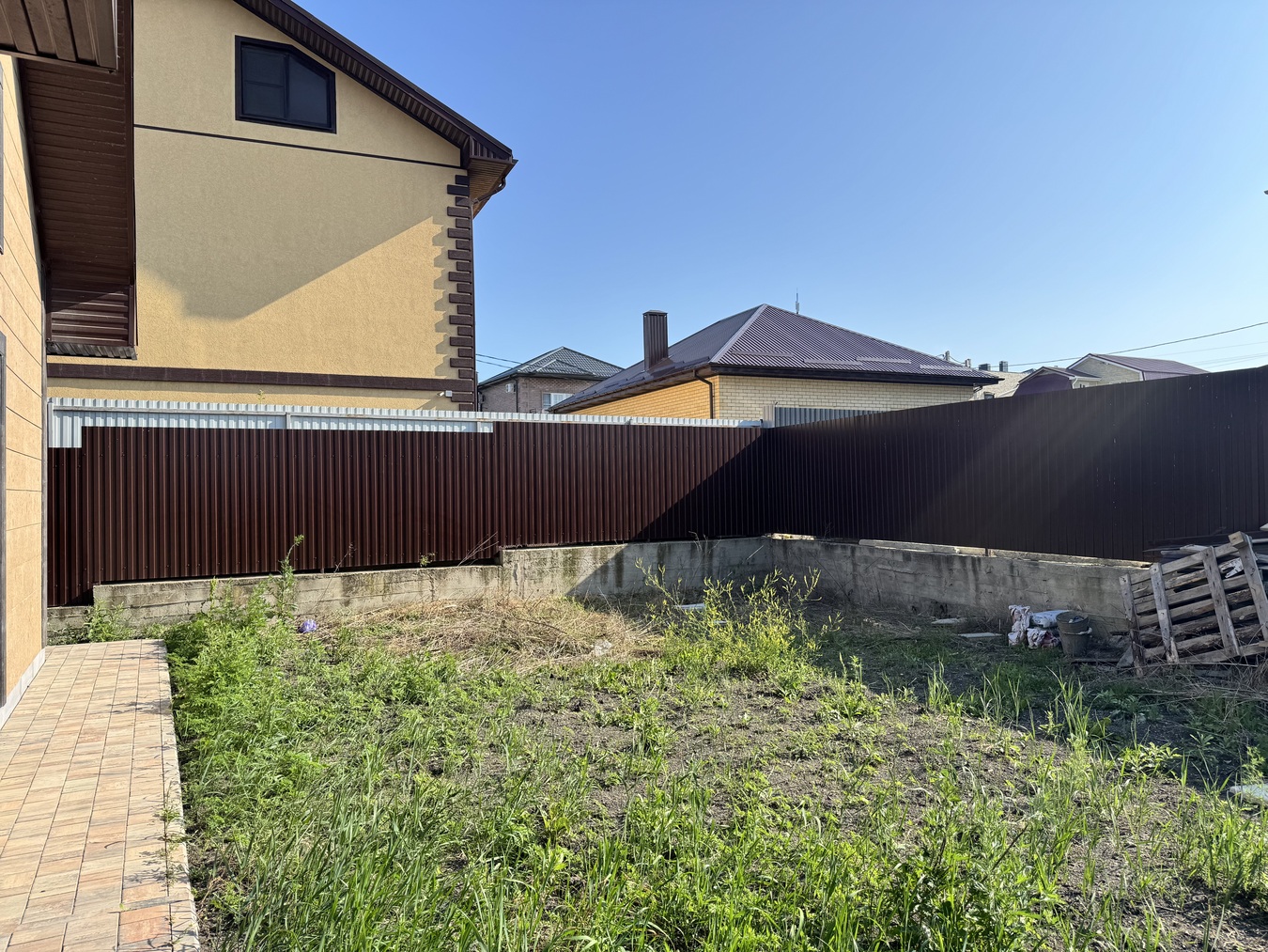 214 м2 на участке 4,7 сот (ровный, правильной формы и без уклона).