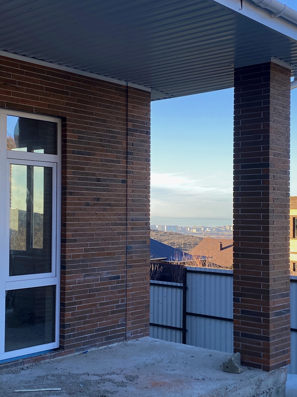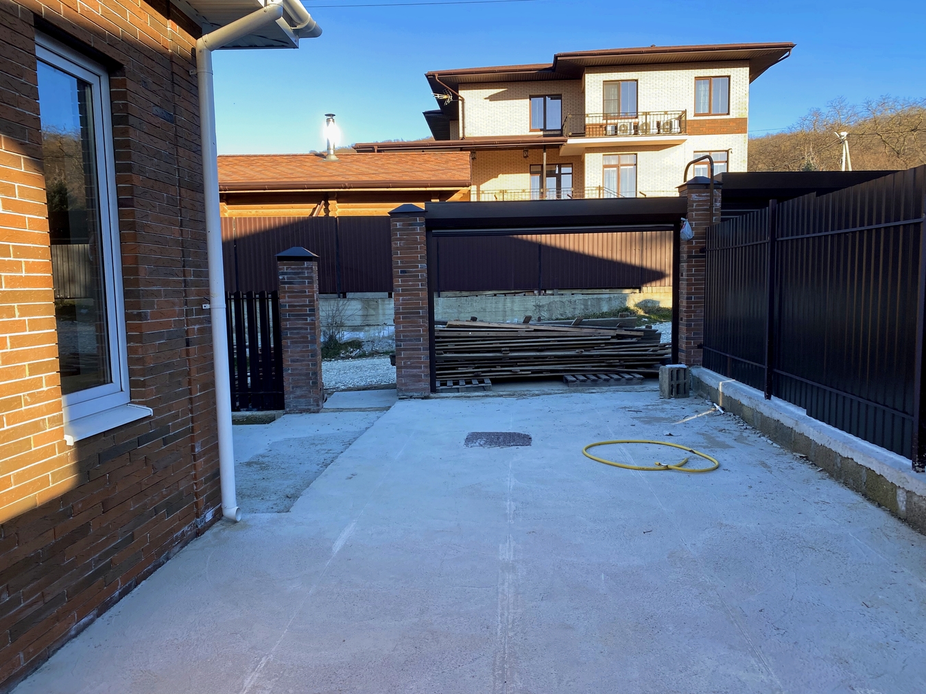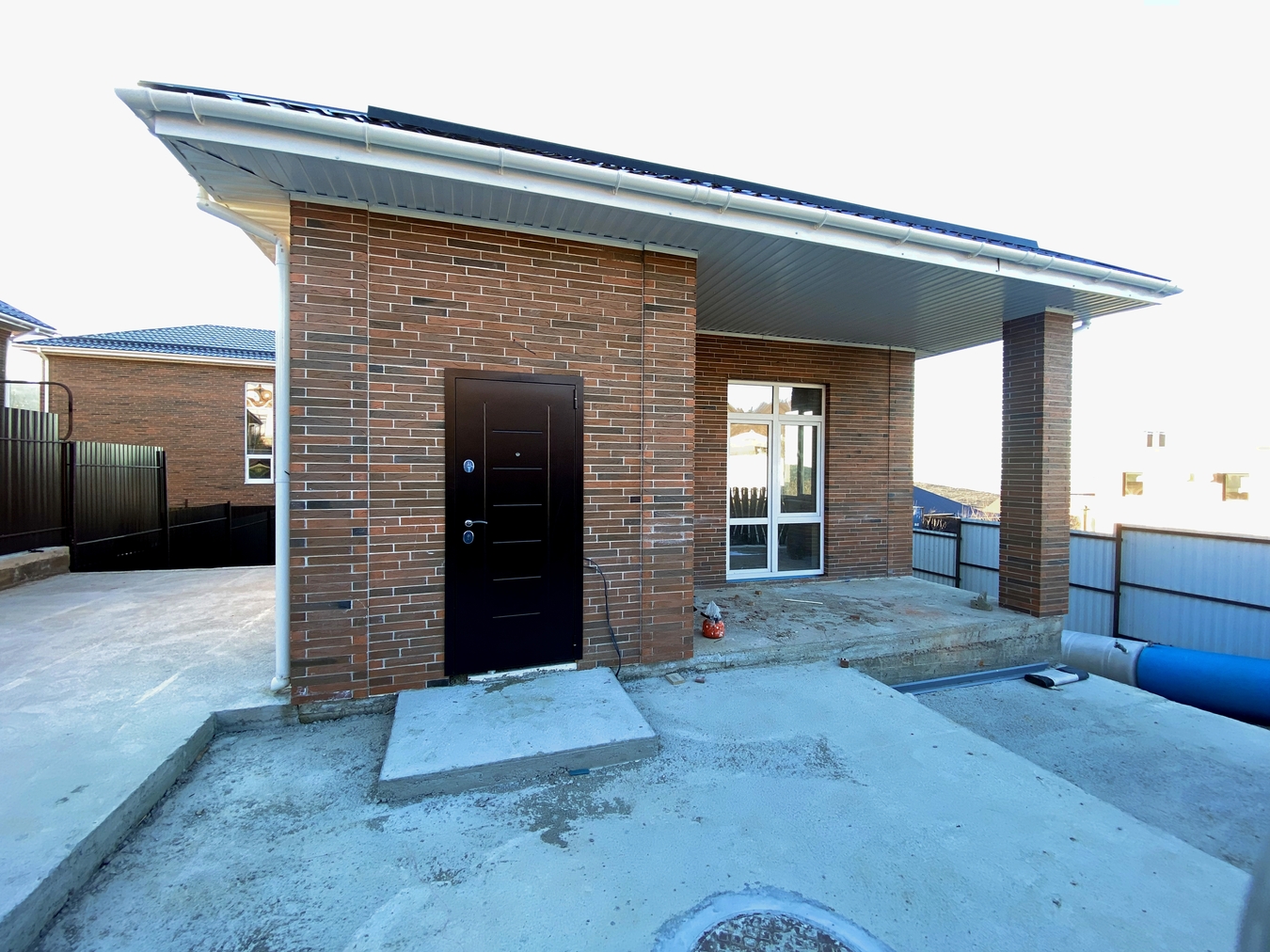 Дом: облицован кирпичом, что обеспечивает долговечность и стильный внешний вид.