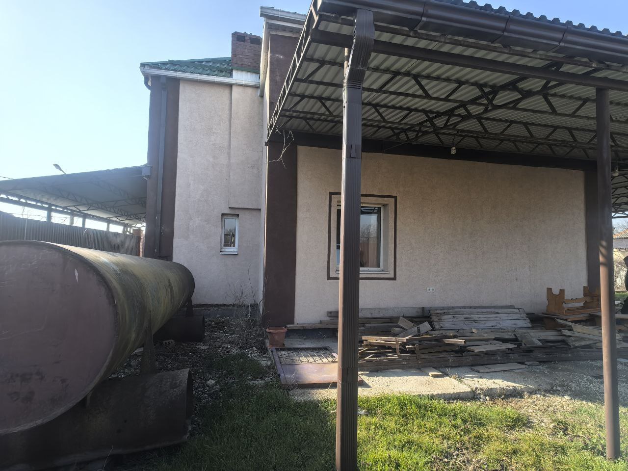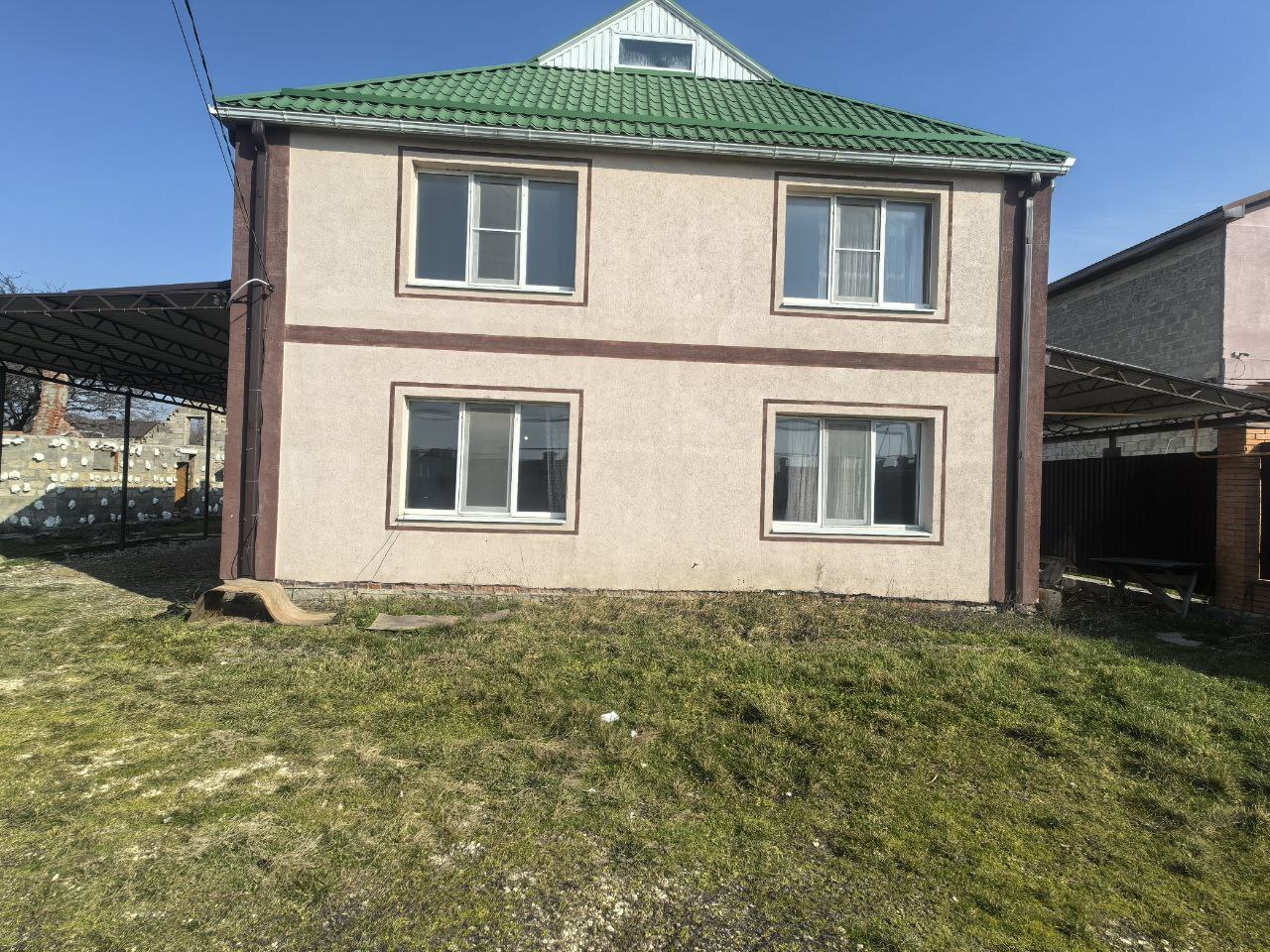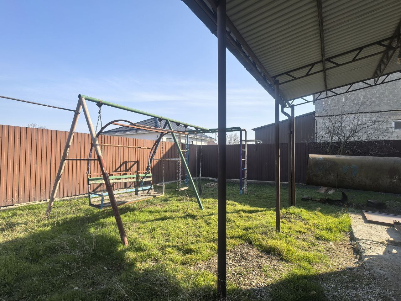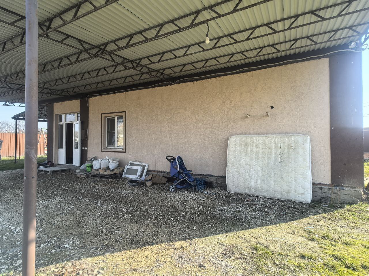· Двор: Навес с двух сторон дома — удобно для парковки или хранения инвентаря.
