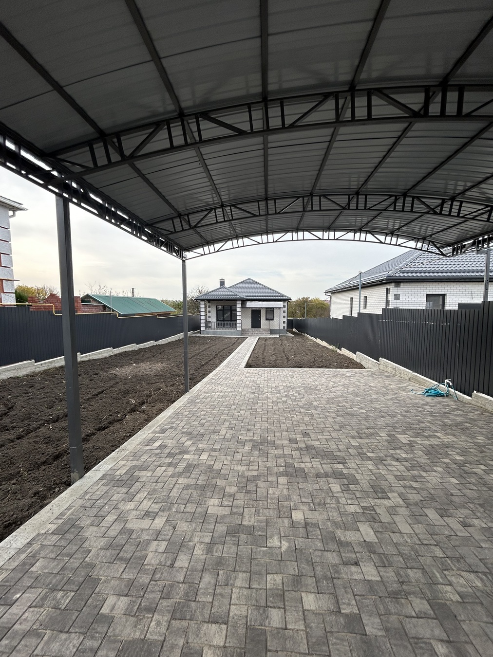 На территории есть навес для автомобиля.