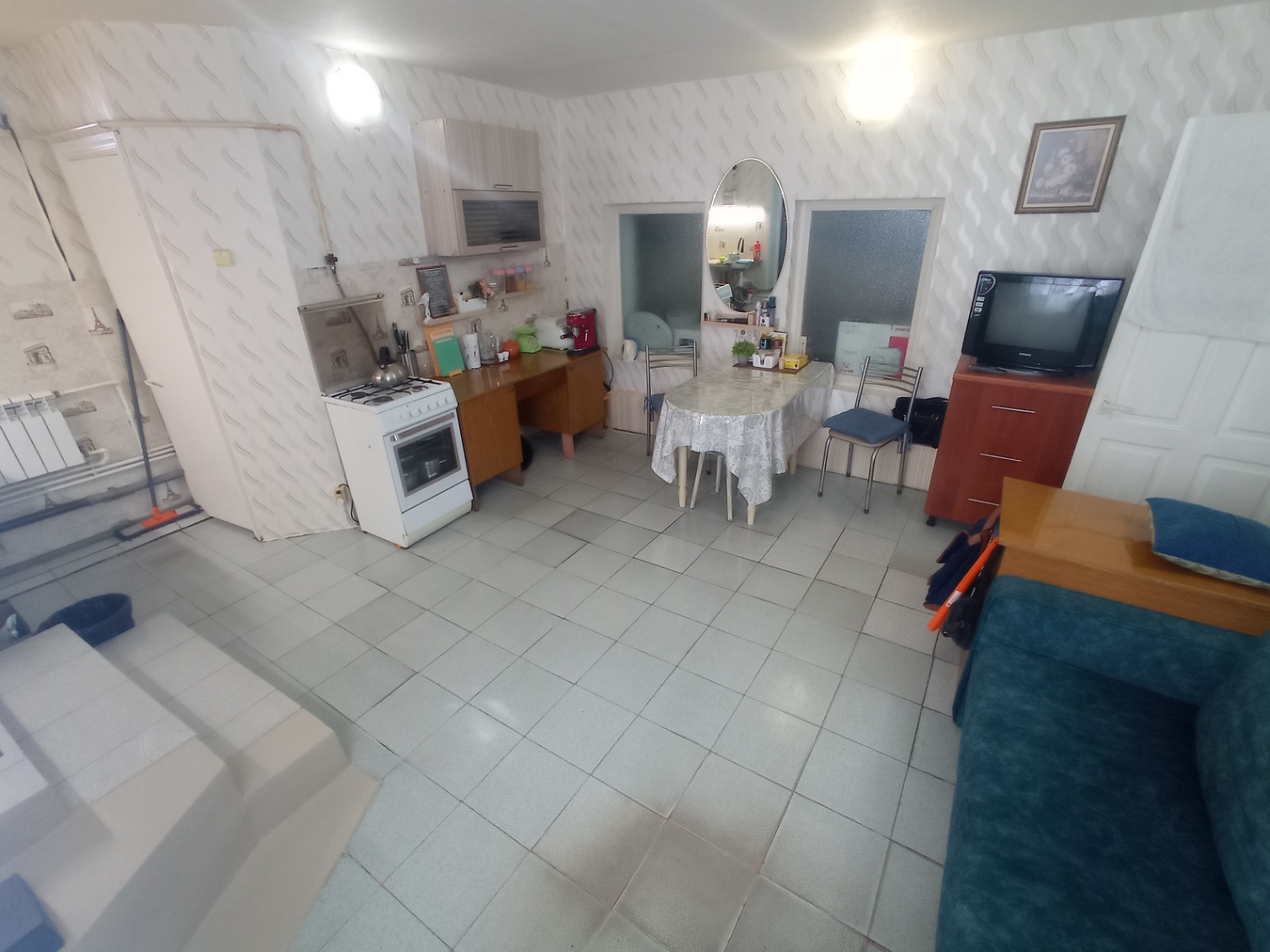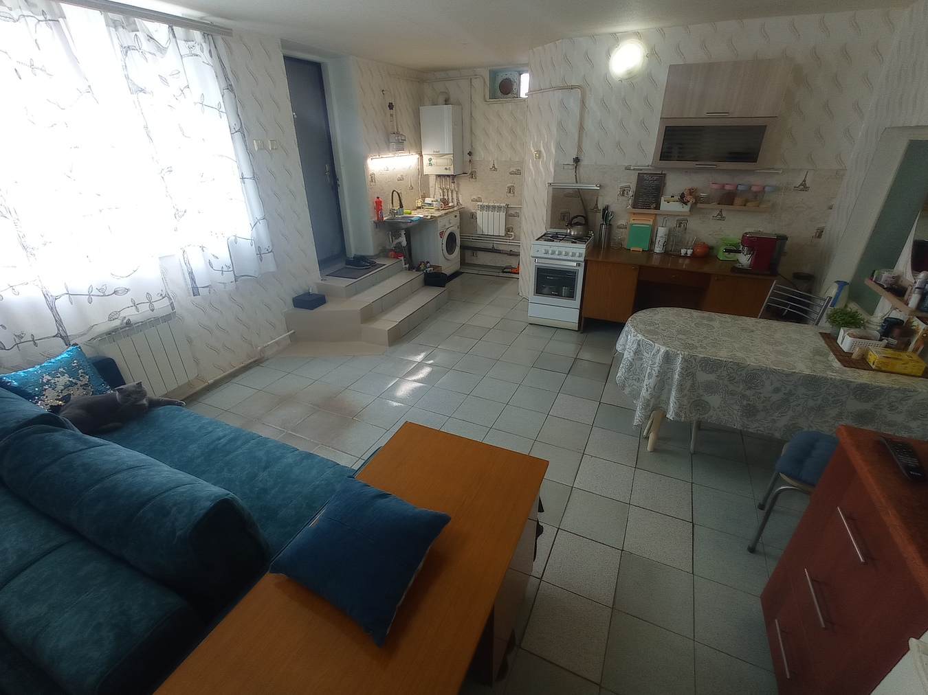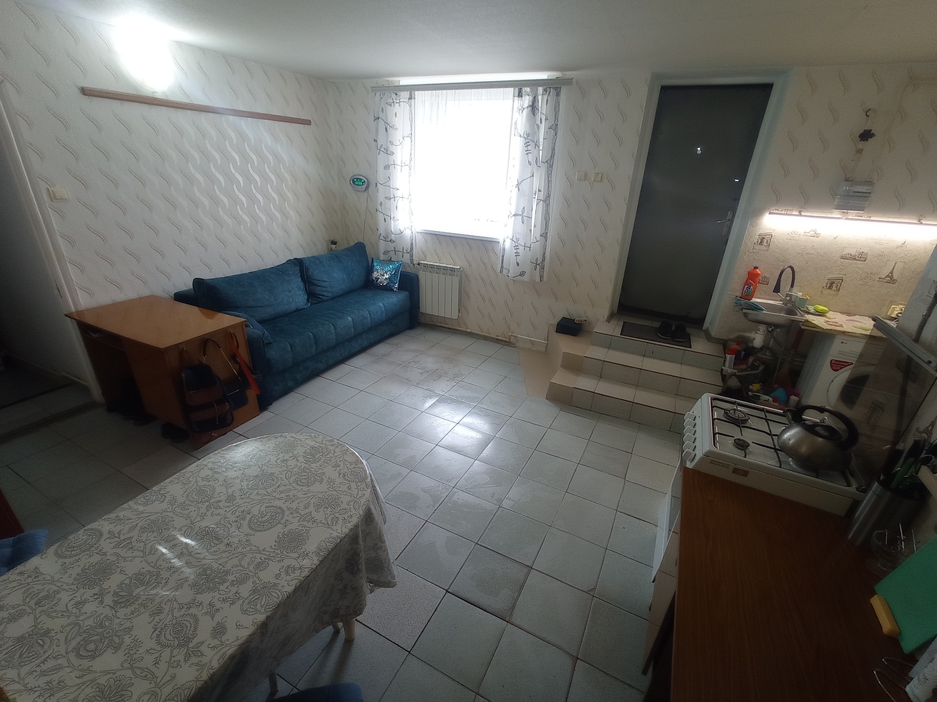 Используется как двухкомнатная квартира с большой кухней и гаражом.