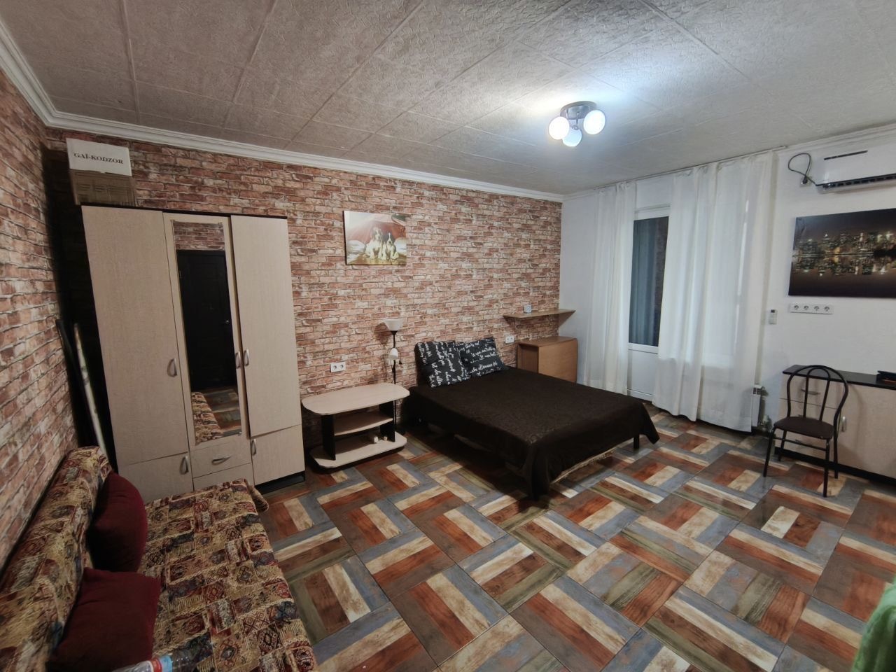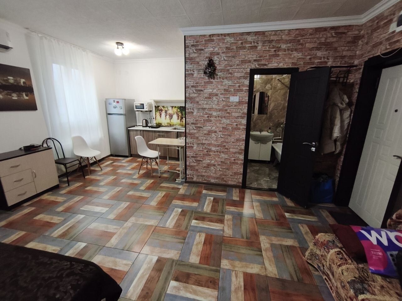 Возможно поставить перегородку и сделать полноценную 1-комнатную квартиру. Это отличный вариант для сдачи или постоянного проживания.