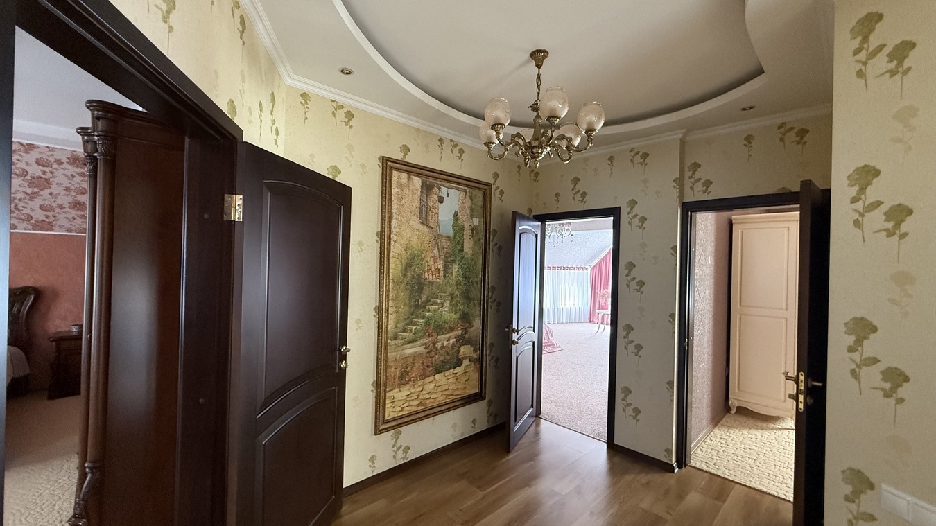 Дом с идеальным ремонтом, построенный для себя из дорогих материалов (блок, кирпич, утеплитель, камень по фасаду). Центральные коммуникации, электрическая подстанция и двор, утопающий в цветах.