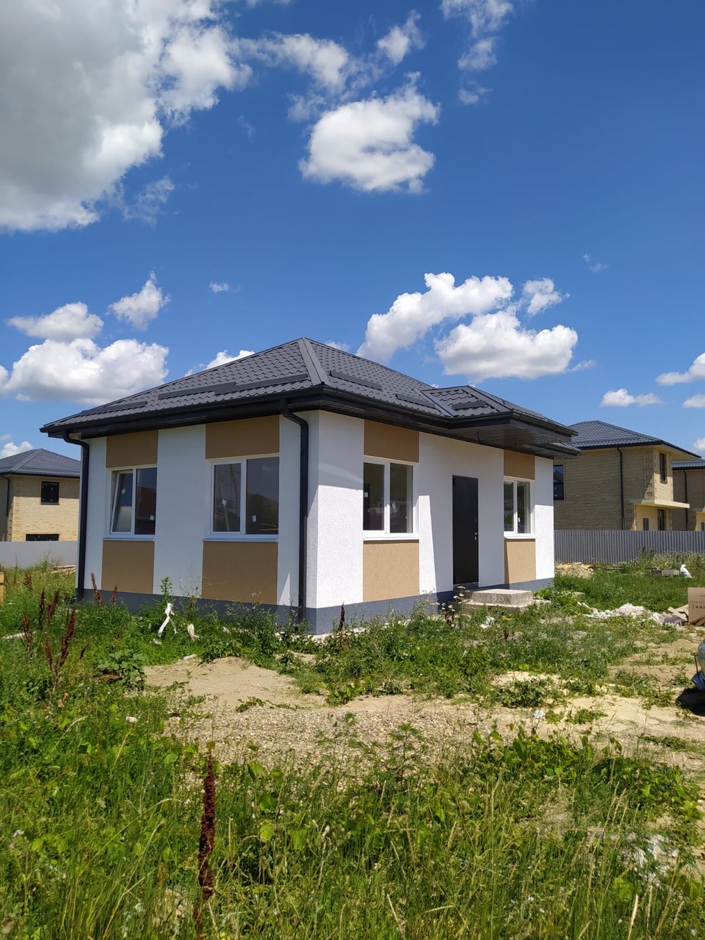 Дом в предчистовой отделке, стены газоблок, фасад кароед. Участок ровный