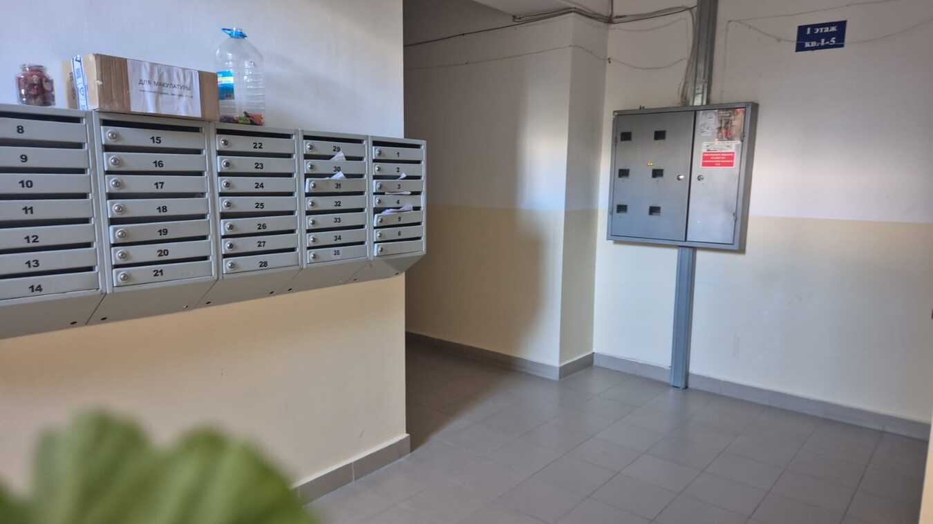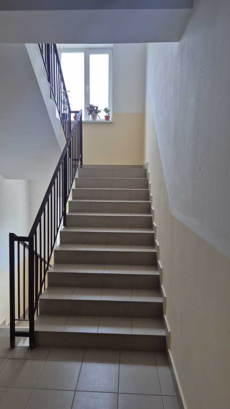 Подъезд очень чистый на окнах цветы.