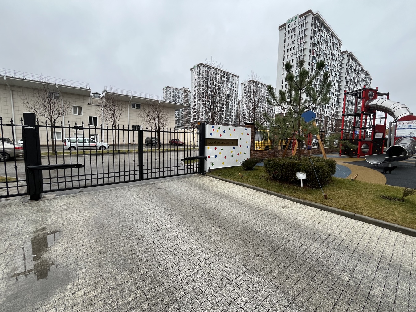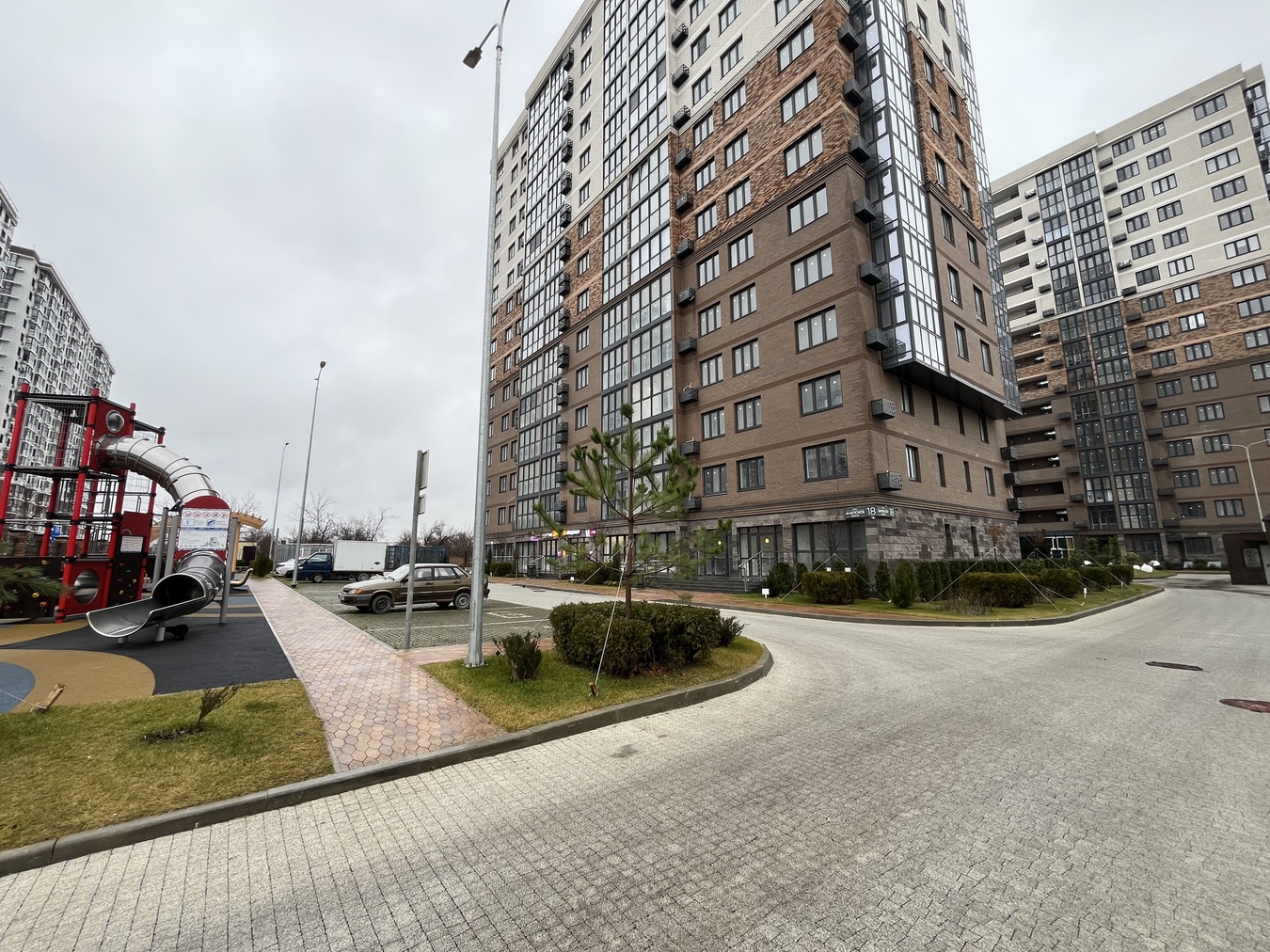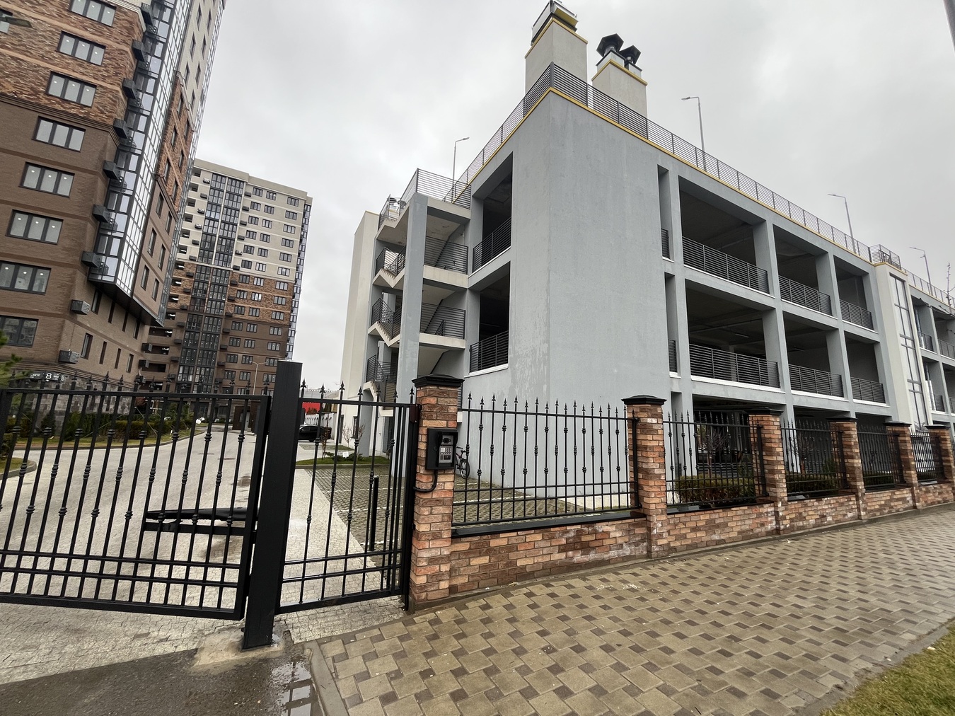 Территория комплекса закрыта, установлено видеонаблюдение, детские и спортивные площадки, зоны отдыха, парковочные места во дворе, также наземный и подземный паркинги.