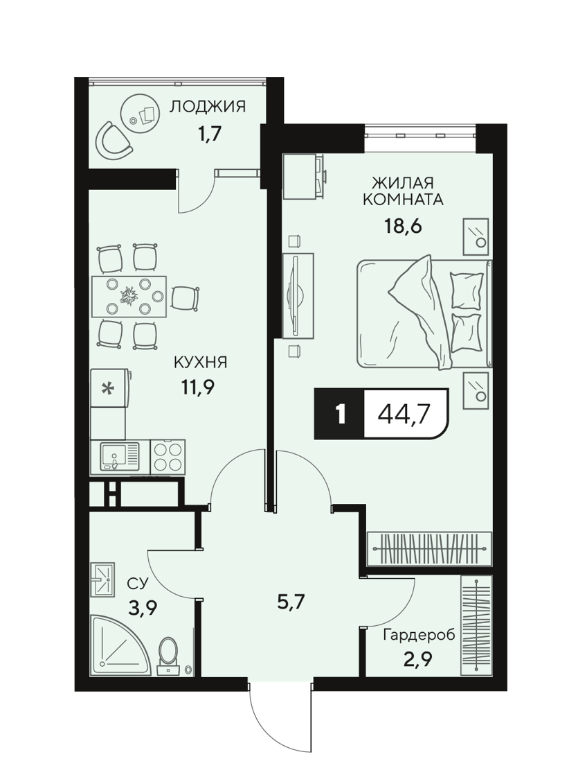 Продается однокомнатная квартира в самом современном жилом комплексе комфорт - класса "18/3" в г. Анапа.