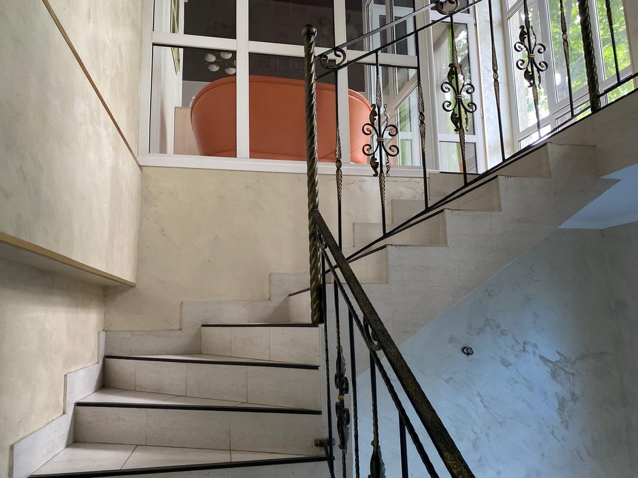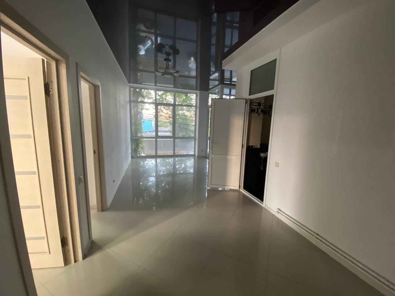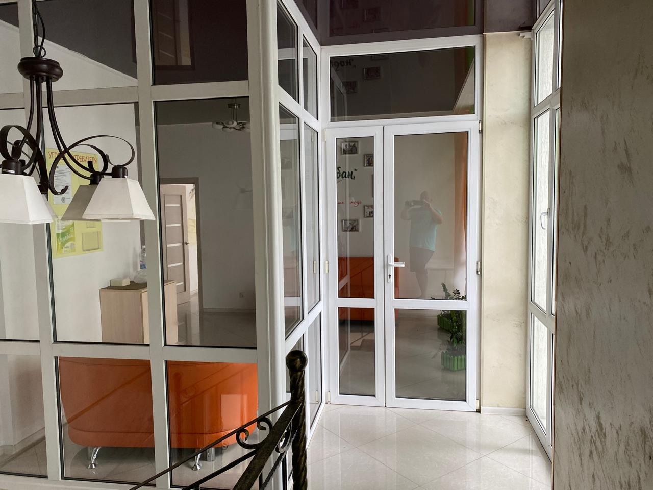 На втором этаже большое светлое помещение с ремонтом (идеально под клинику или офис). Помимо большого общего холла с витражным остеклением имеются и изолированные кабинеты.