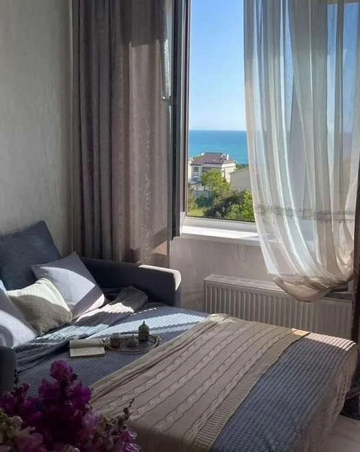 Незабываемые пейзажи: из каждого окна — завораживающий вид на море! Кухня‑гостиная (15 м2), зал (18 м2), спальня (11 м2) и балкон (4 м2) открывают панораму, от которой захватывает дух.
