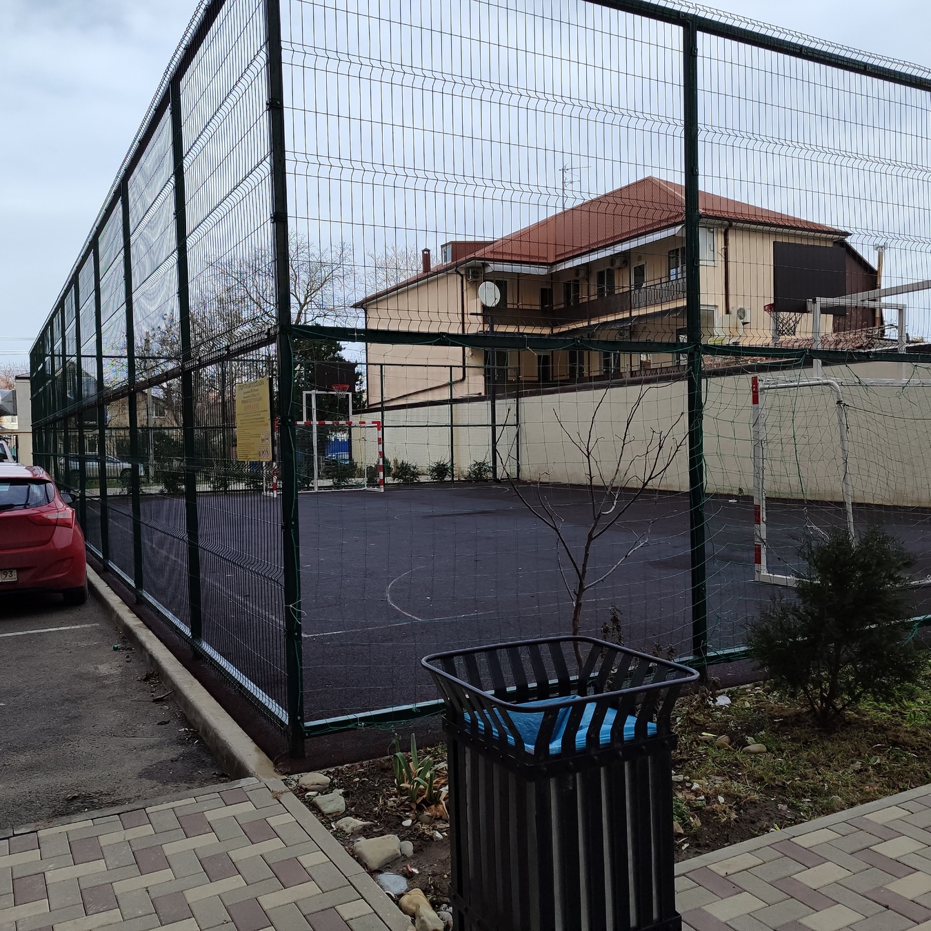 Рядом — школа № 1, детский сад и городская больница.
