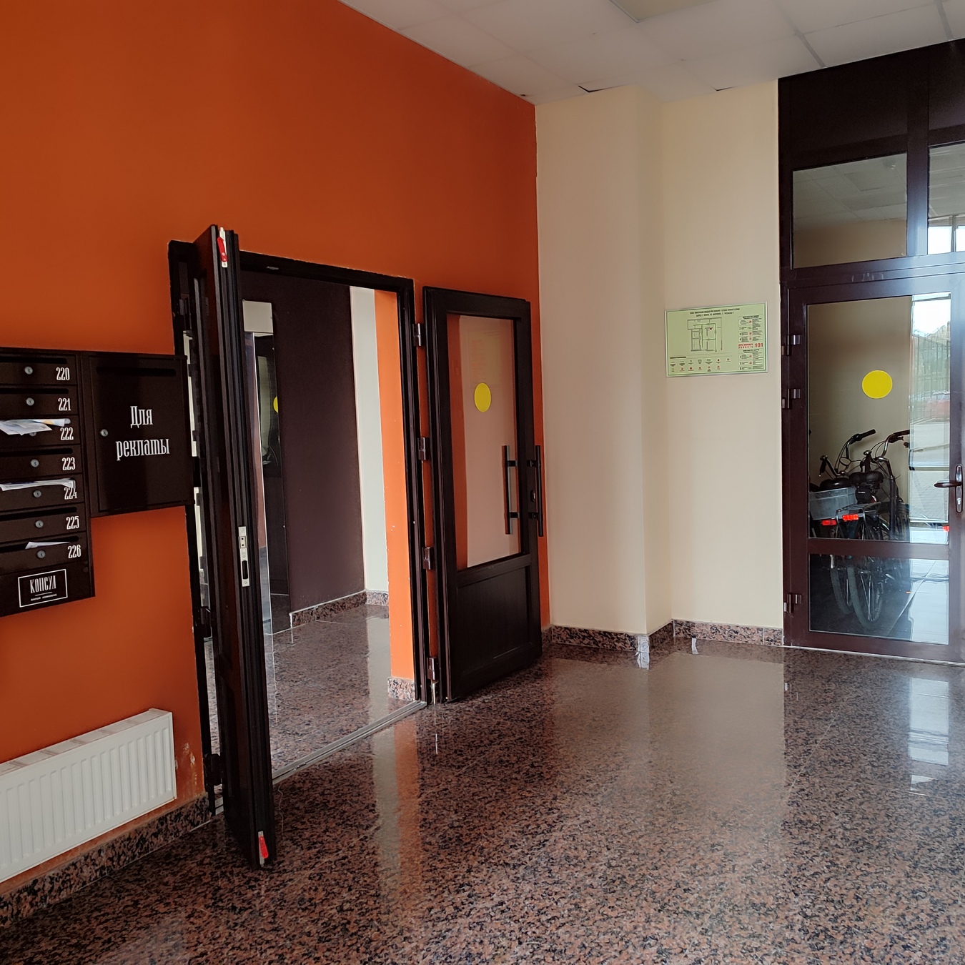 Удобство передвижения: два скоростных лифта (пассажирский и грузовой), причём грузовой спускается прямо в подземный паркинг.