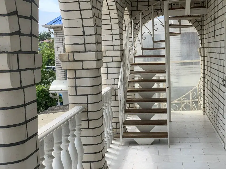 📍Высочайший забор из белого камня и огромный навес на преддомовую территорию. Дом из белого камня, толщина стен 80 см, утеплитель 15 см.