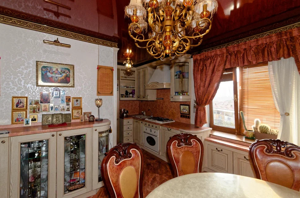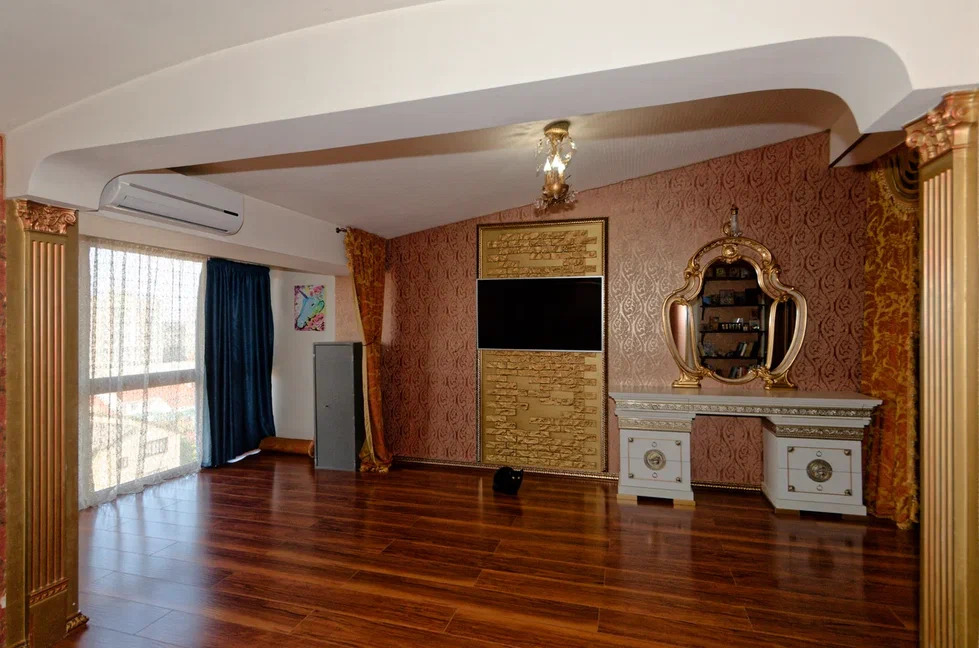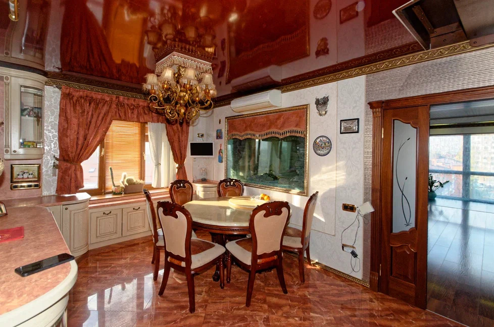 В квартире выполнен дорогой ремонт из натуральных материалов стиль "советский лофт" с роскошной мебелью и стильным декором.