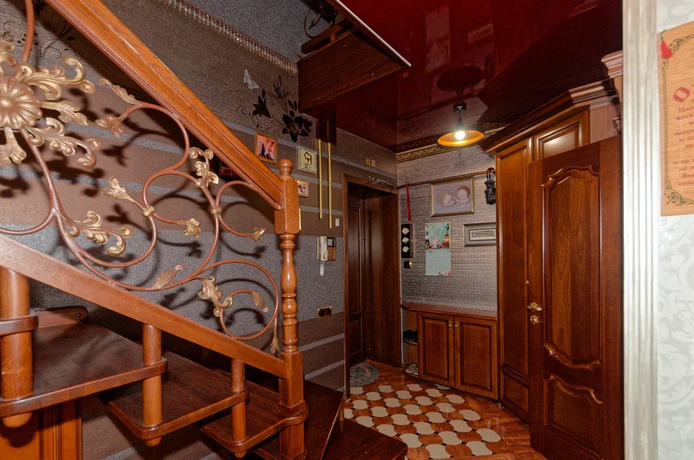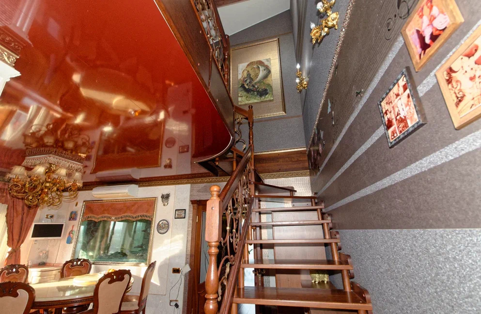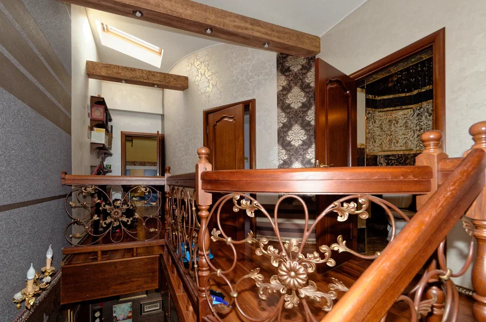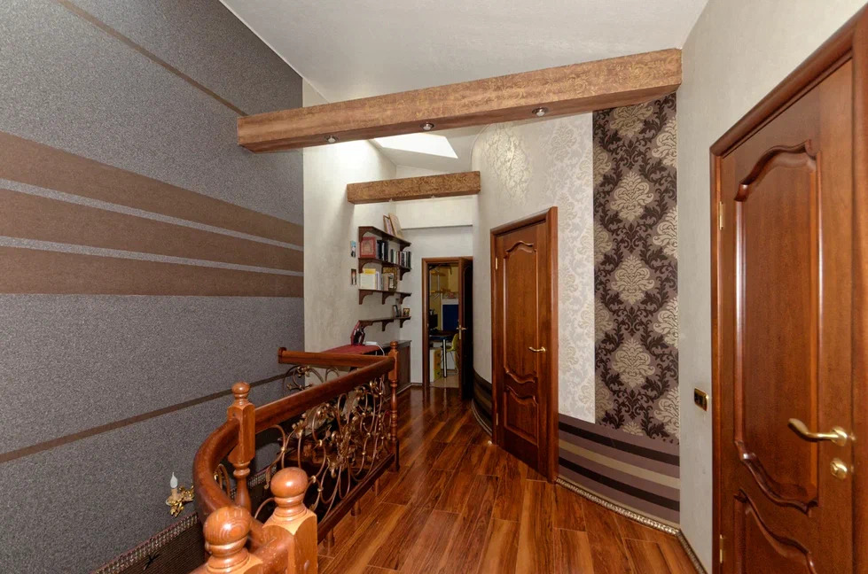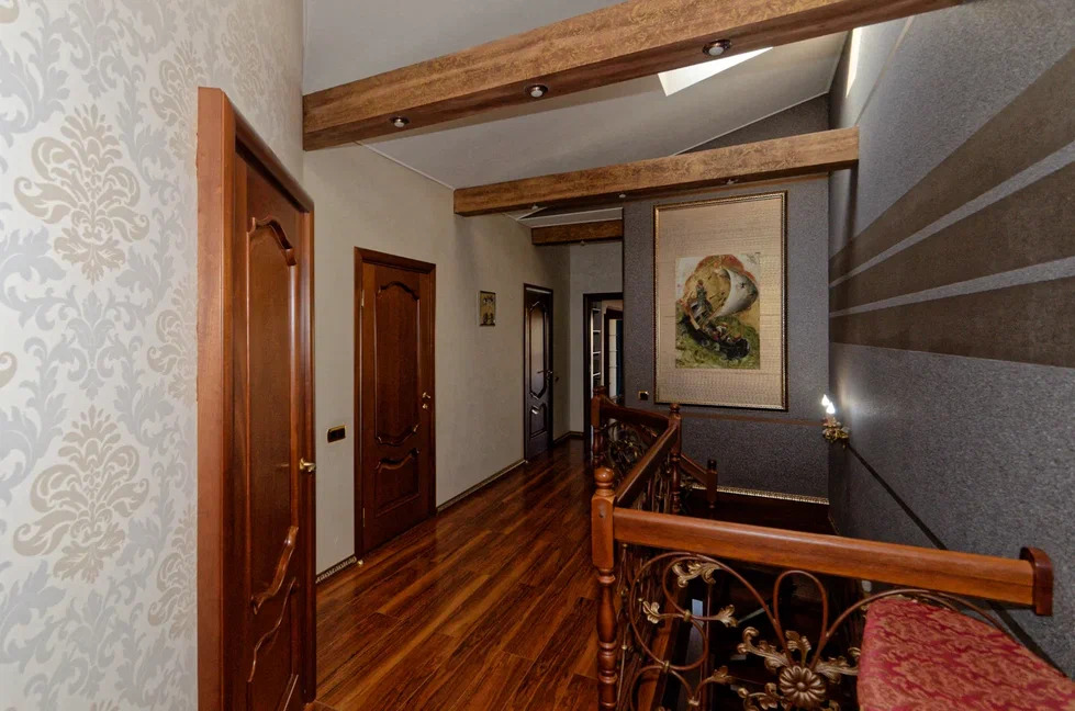 Между этажами расположена лестница из дорогого деревянного массива.