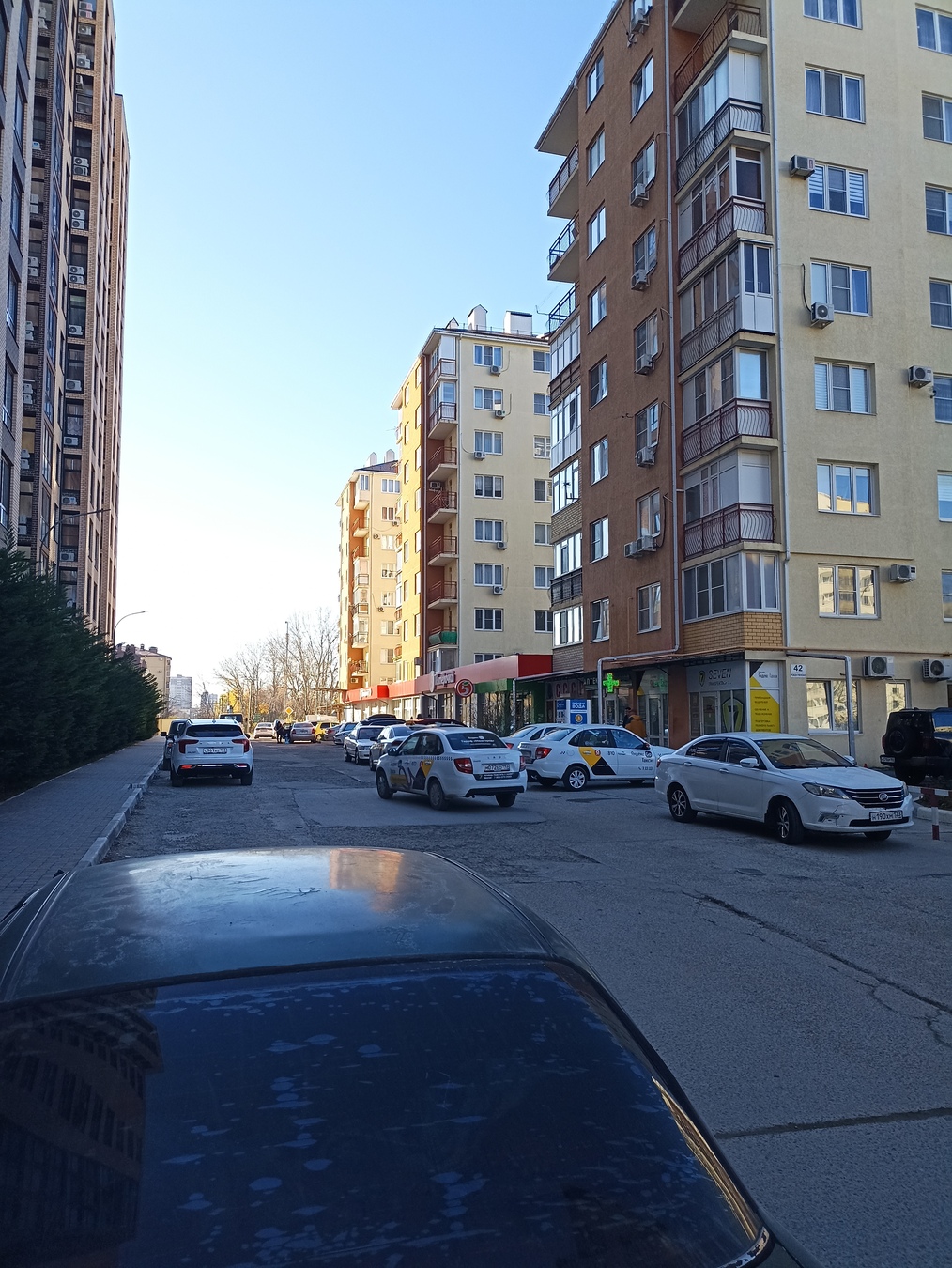 В доме сетевой магазин "Пятерочка", "Магнит", другие магазины, фермерский рынок рядом.