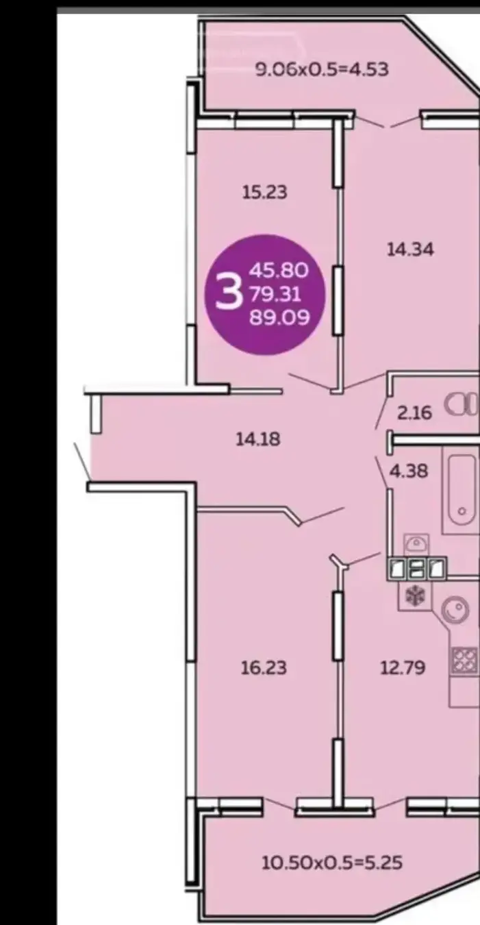 Большая трехкомнатная квартира распашонка