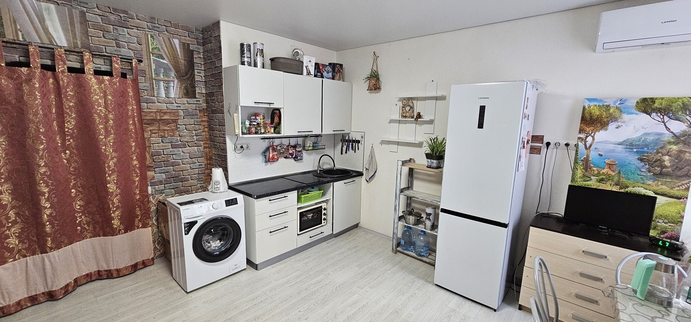 Развитая инфраструктура: во дворе есть парковка + подземная , зона барбекю , теннисный корт ,спорт площадка , игровая зона для детей , дет. сады , школа , магазины , аптеки, банкетный зал , остановки рядом , ж/д вокзал 20 мин , до моря 15 мин .на авто .
