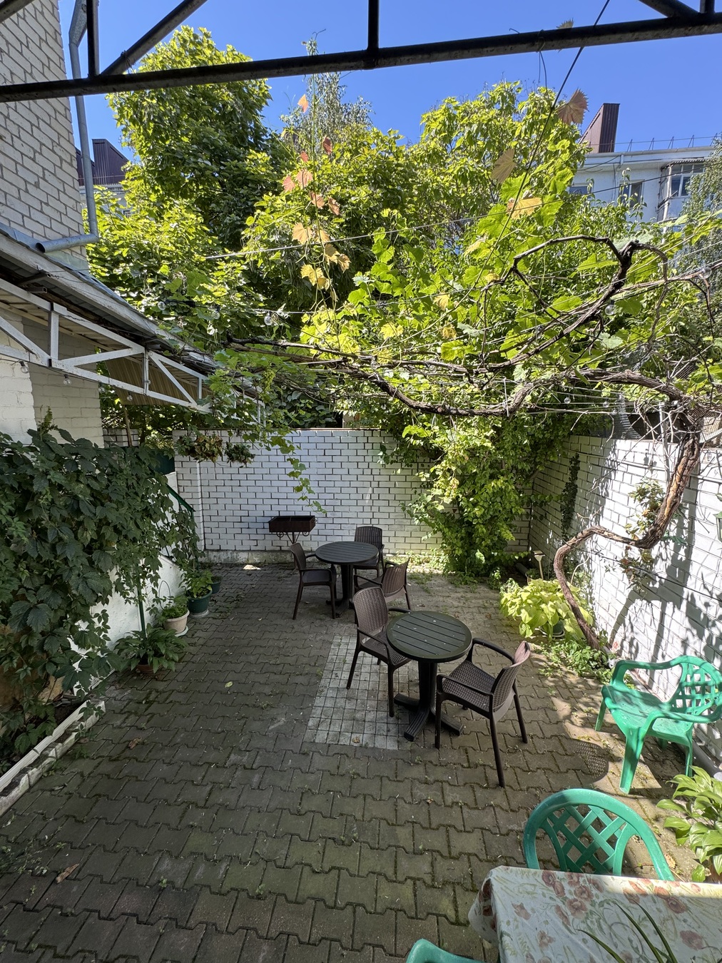 Есть тихий маленький дворик зона барбекью где можно пожарить шашлык посидеть отдохнуть