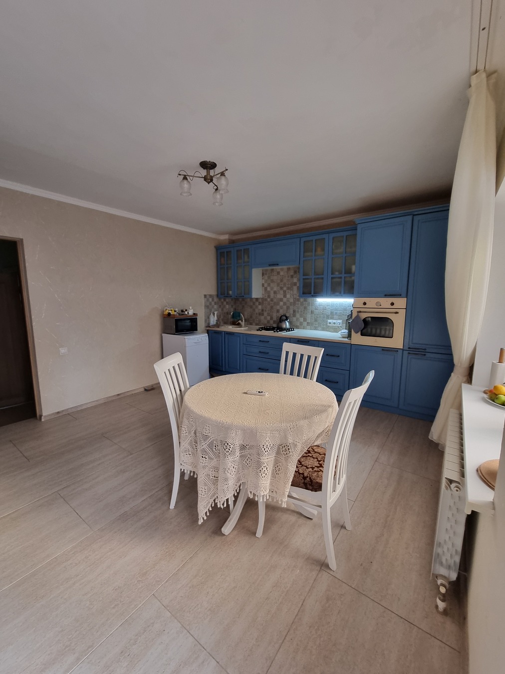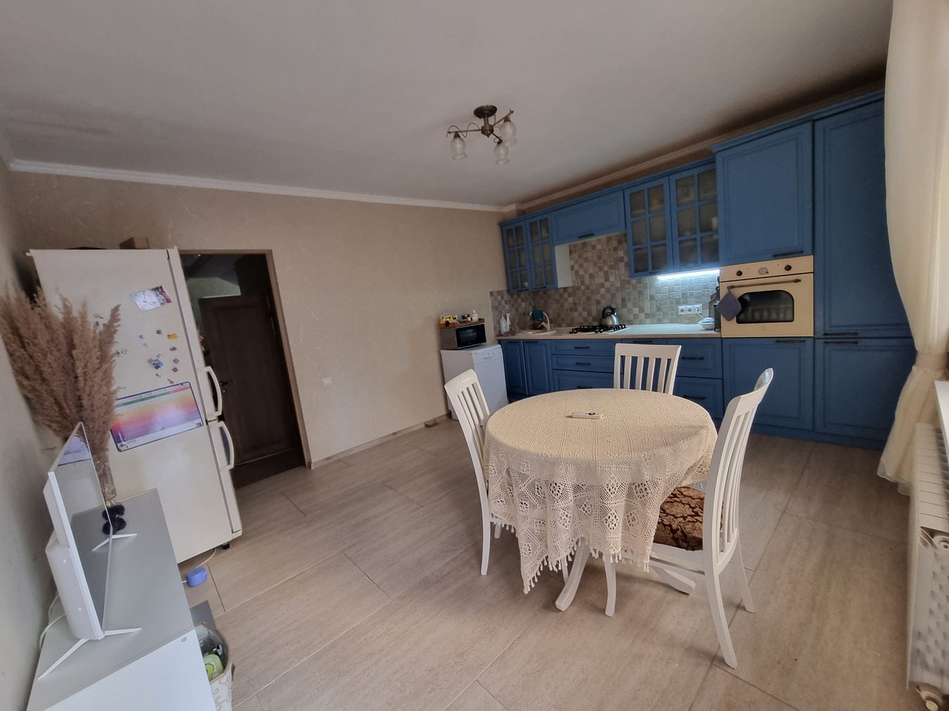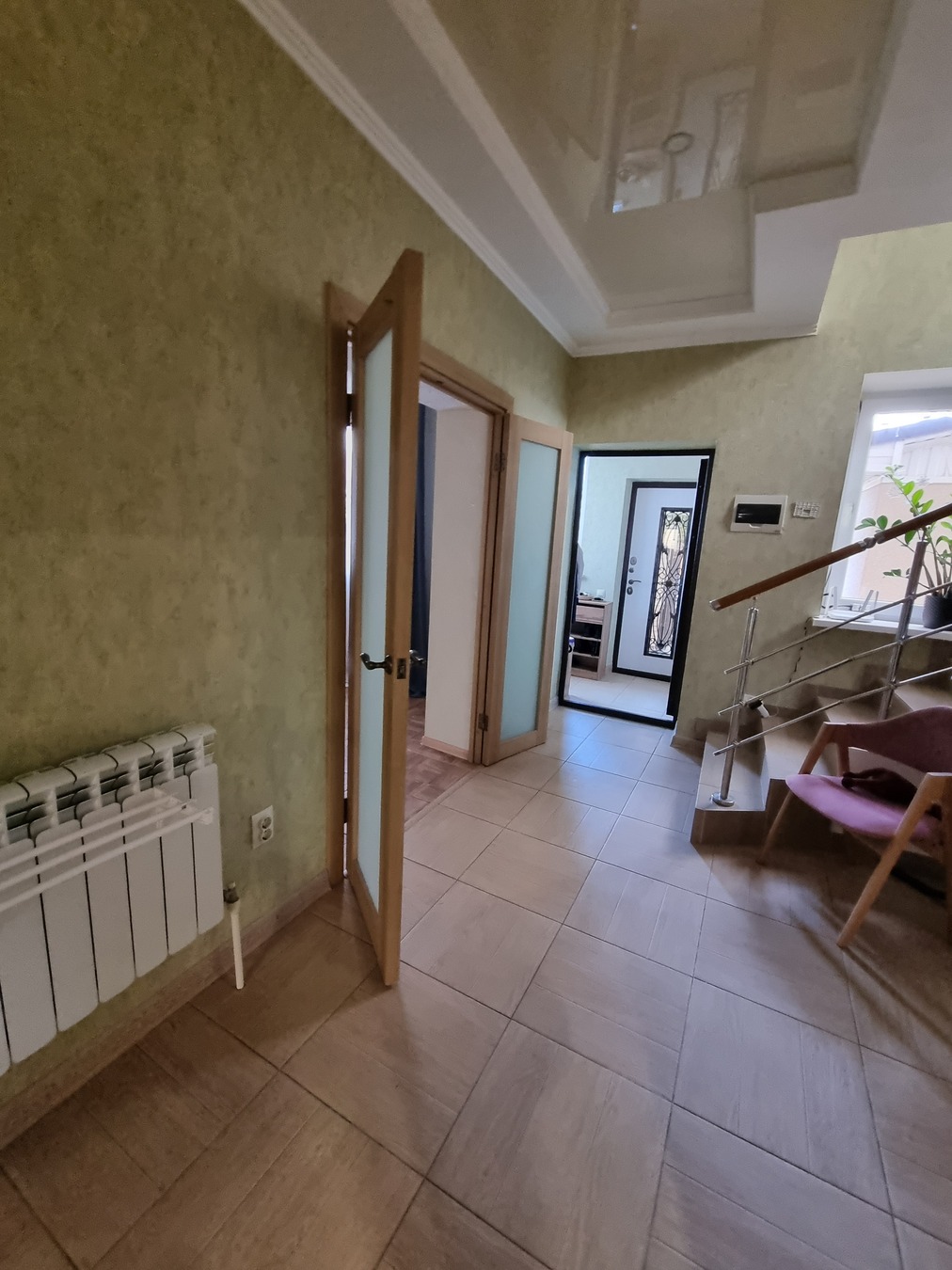 Это дом для большой семьи. Пять просторных комнат по 20-25 кв каждая. Хороший качественный ремонт. Просторная кухня с выходом на террасу и в сад.